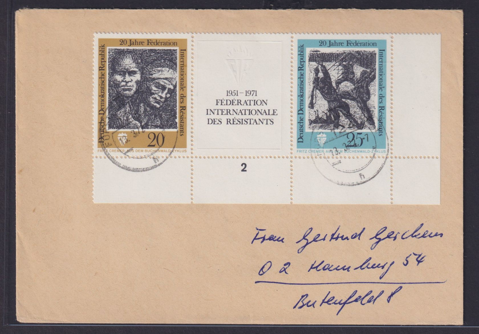 DDR Brief Bogenecke Zusammendruck Widerstandskämpfer W Zd 251 Fürstenwalde nach