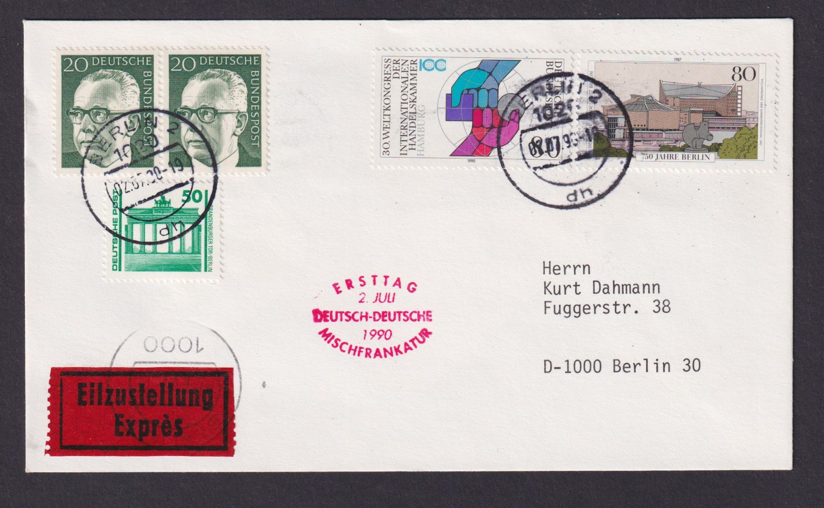 DDR Bund Deutsche Einheit attraktiver Brief Ersttag 2. Juli Deutsch Deutsche MIF
