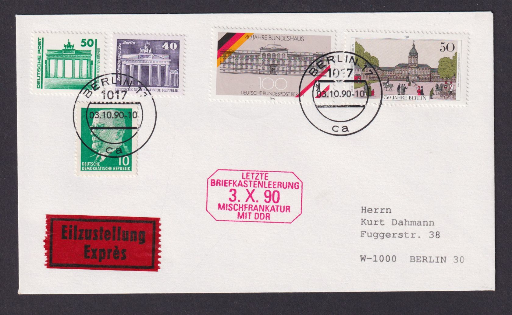 DDR Bund Deutsche Einheit attraktiver Brief Letzte Briefkastenleerung 3.10.1990