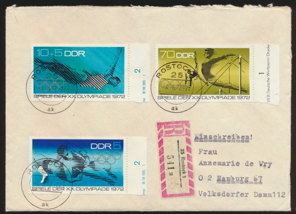 DDR Druckvermerk R Brief Olympia 1758 DV u.a. Rostock nach Hamburg 67
