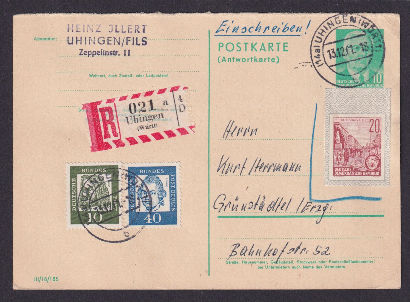 Grünstädtel Erzgebirge beanstandet und Nachgebühr Bedeutende Deutsche 13.12.1961