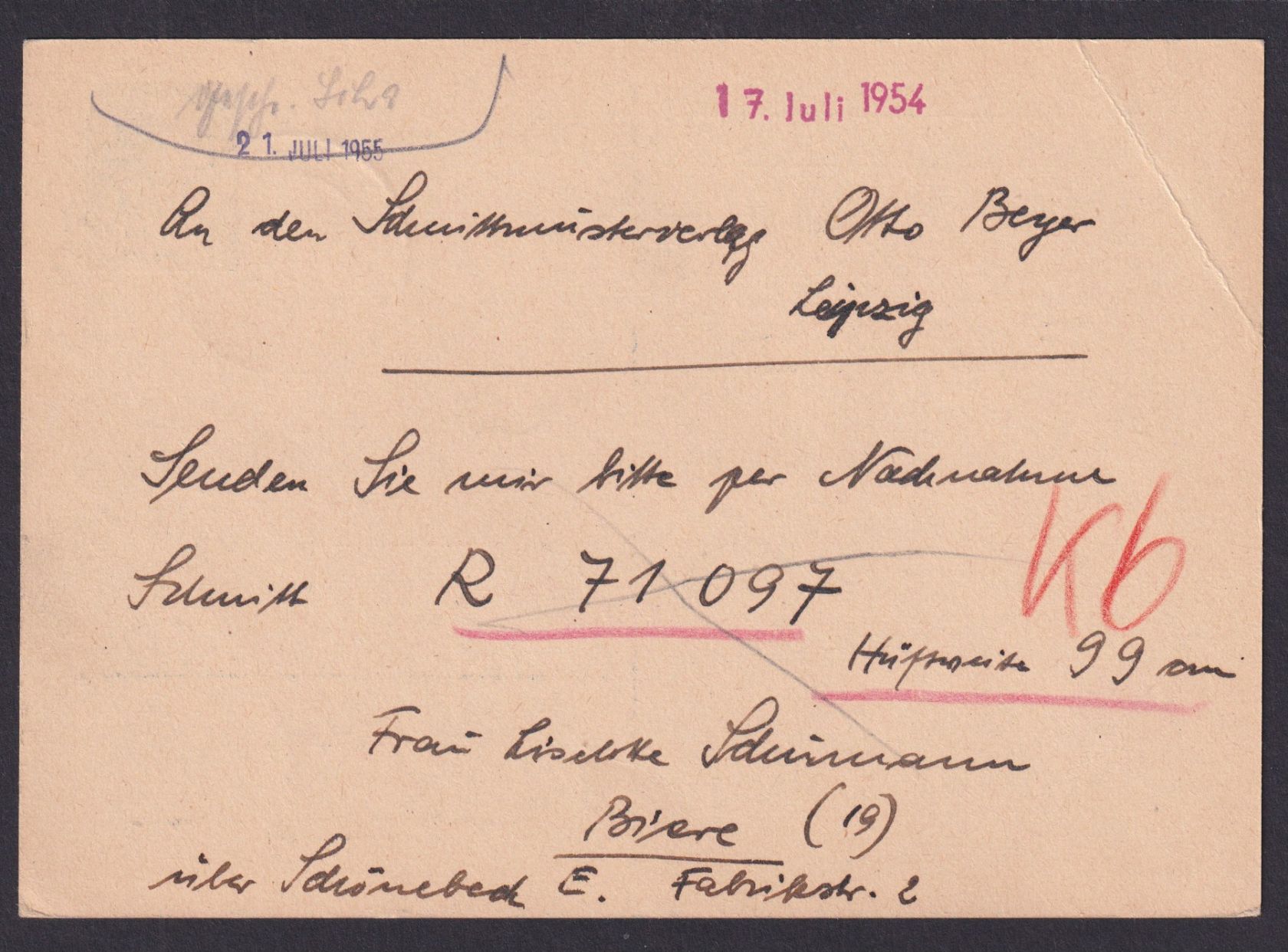 14.07.1954, Eckbug oben links.