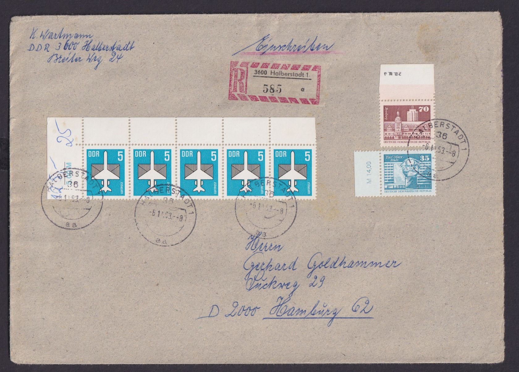 DDR R Brief Bogenecke Eckrand Bogenzähler Flugpost Bauwerke Halberstadt nach