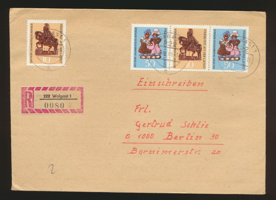 DDR R Brief Zusammendruck 1521-1523 W Zd 213 Volkskunst von Wolgast nach Berlin