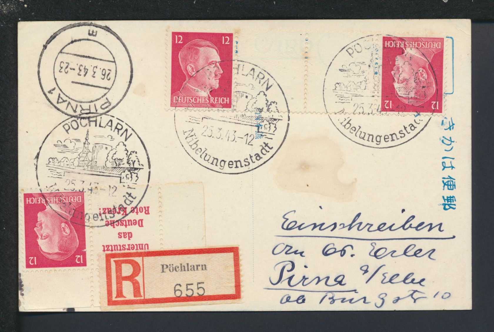 Deutsches Reich Zudammendruck Einschreibe Ansichtskarte Kumamoto Pöchlarn Pirna