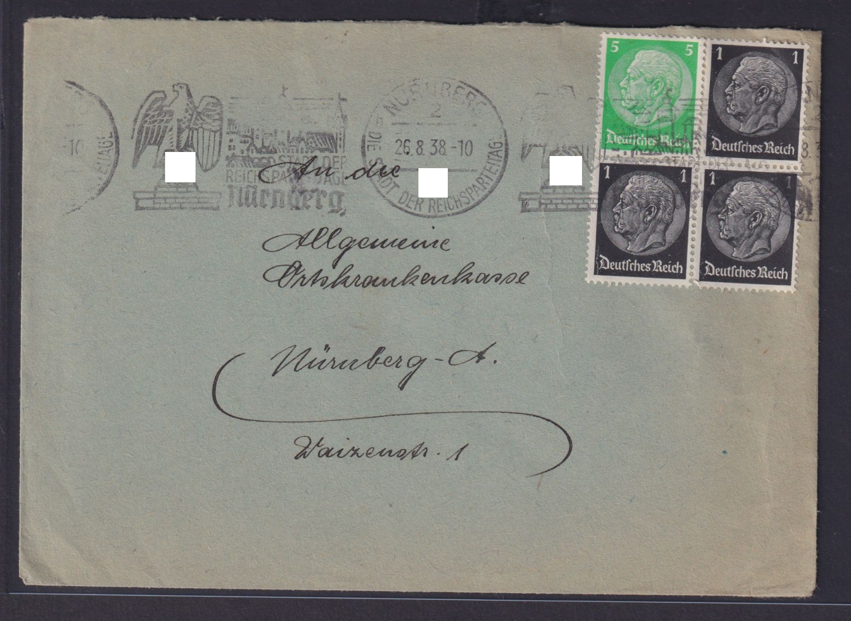 Deutsches Reich Zusammendruck Viererblock Brief selt. Stempel Adler Nürnberg