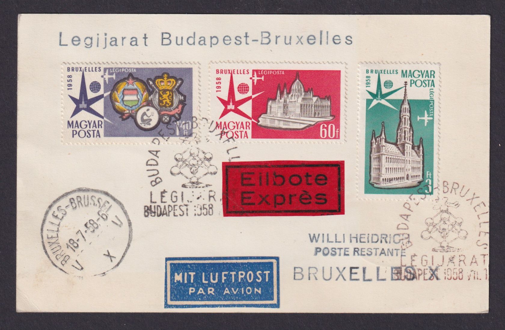 Flugpost Brief Air Mail Ungarn Legijarat Budapest Brüssel Eilbote 18.7.1958