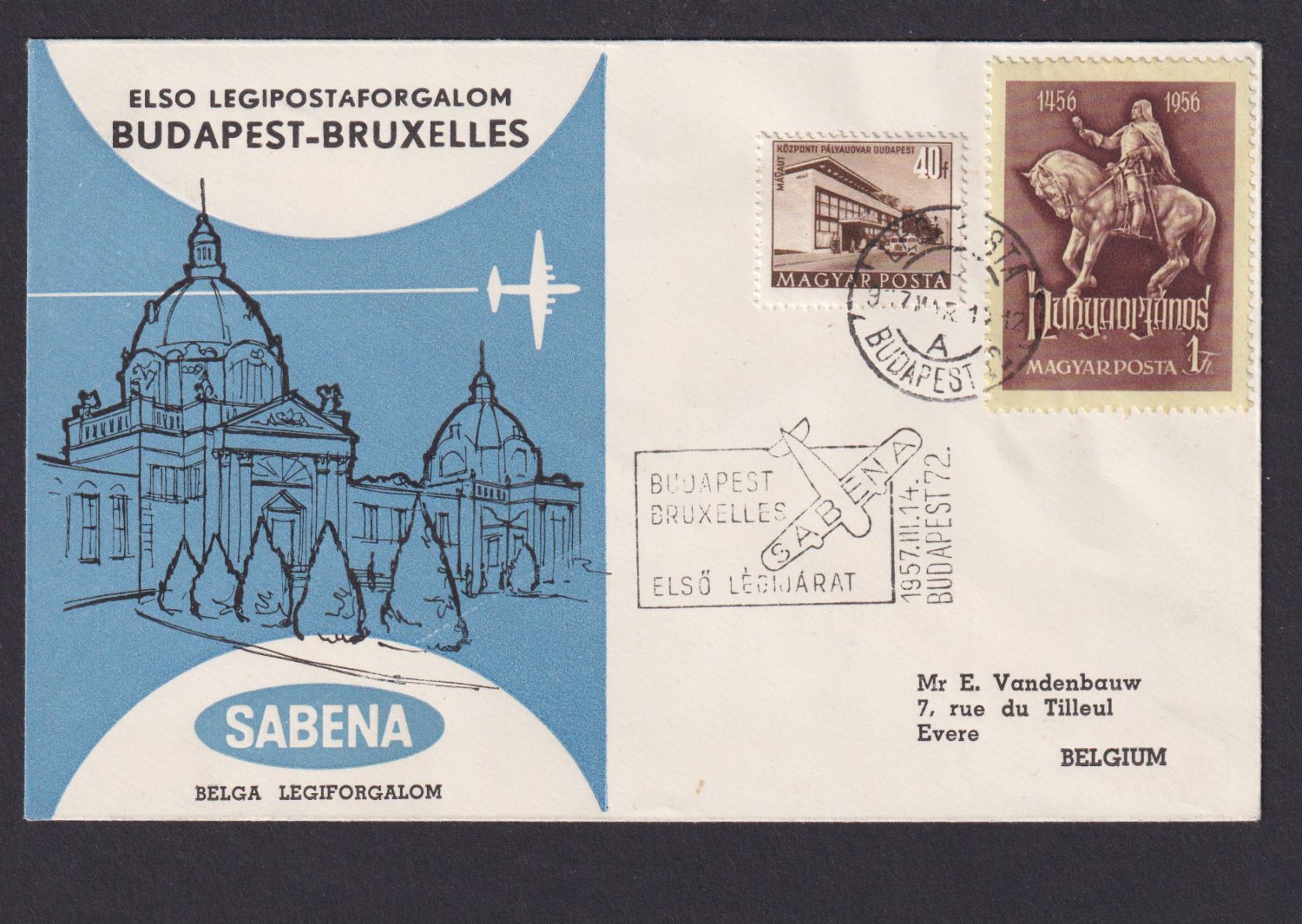 Flugpost Brief Air Mail Ungarn Sabena Budapest Brüssel Belgien sehr schönes