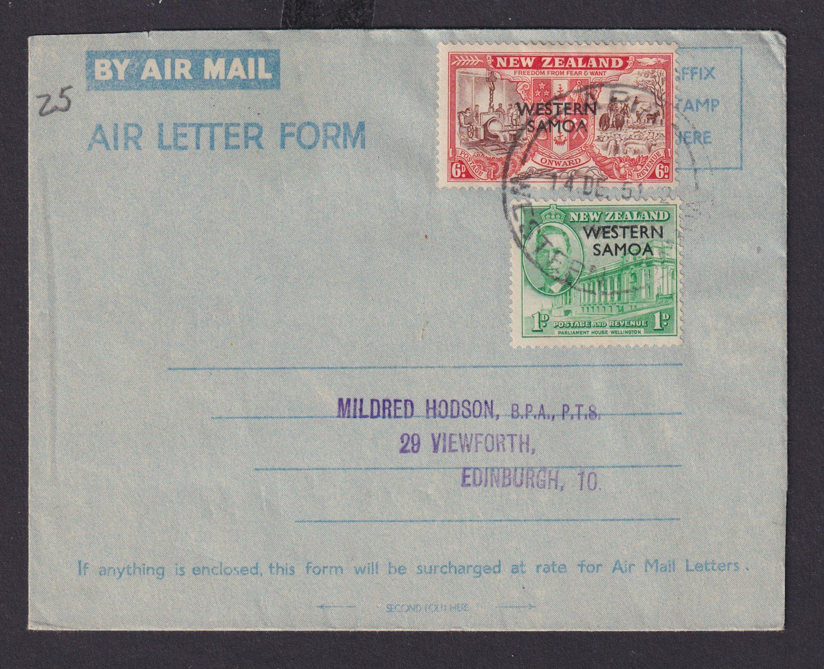 Flugpost Neuseeland Aufdruck Western Samoa Afrika frank. Aerogramm Edinburgh