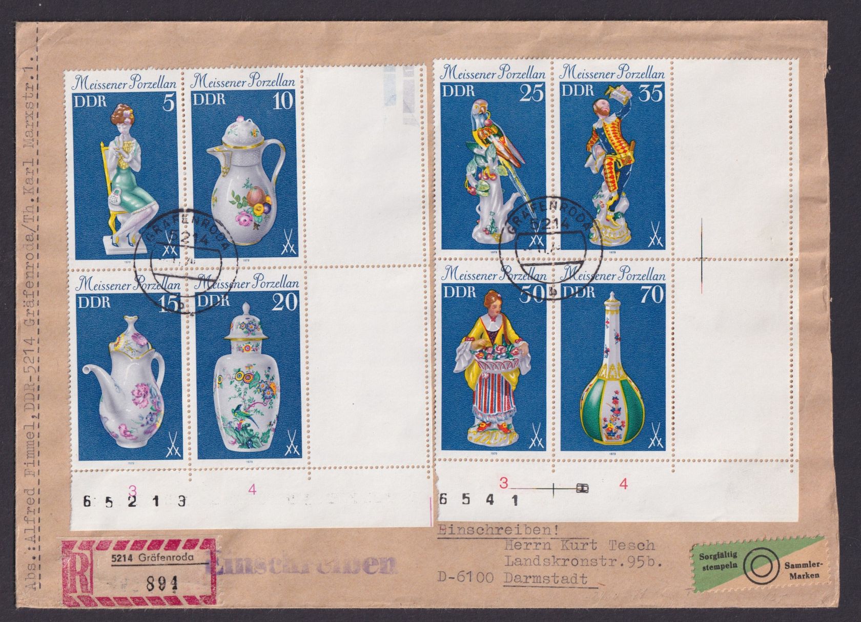 Bogenecke Eckrand mit Zählnummer und rotem Reihenzähler Gräfenroda nach Darmstadt und dann als FDC.