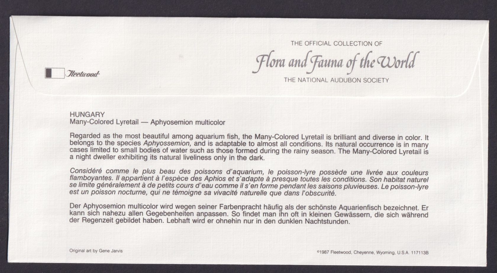 Ein sehr schöner, individueller Umschlag aus der tollen Sammlung Pflanzen und Tiere der Welt Flora & Fauna.Rückseitig hat der Beleg eine gute dreisprachige Beschreibung, unter anderem Deutsch und Englisch