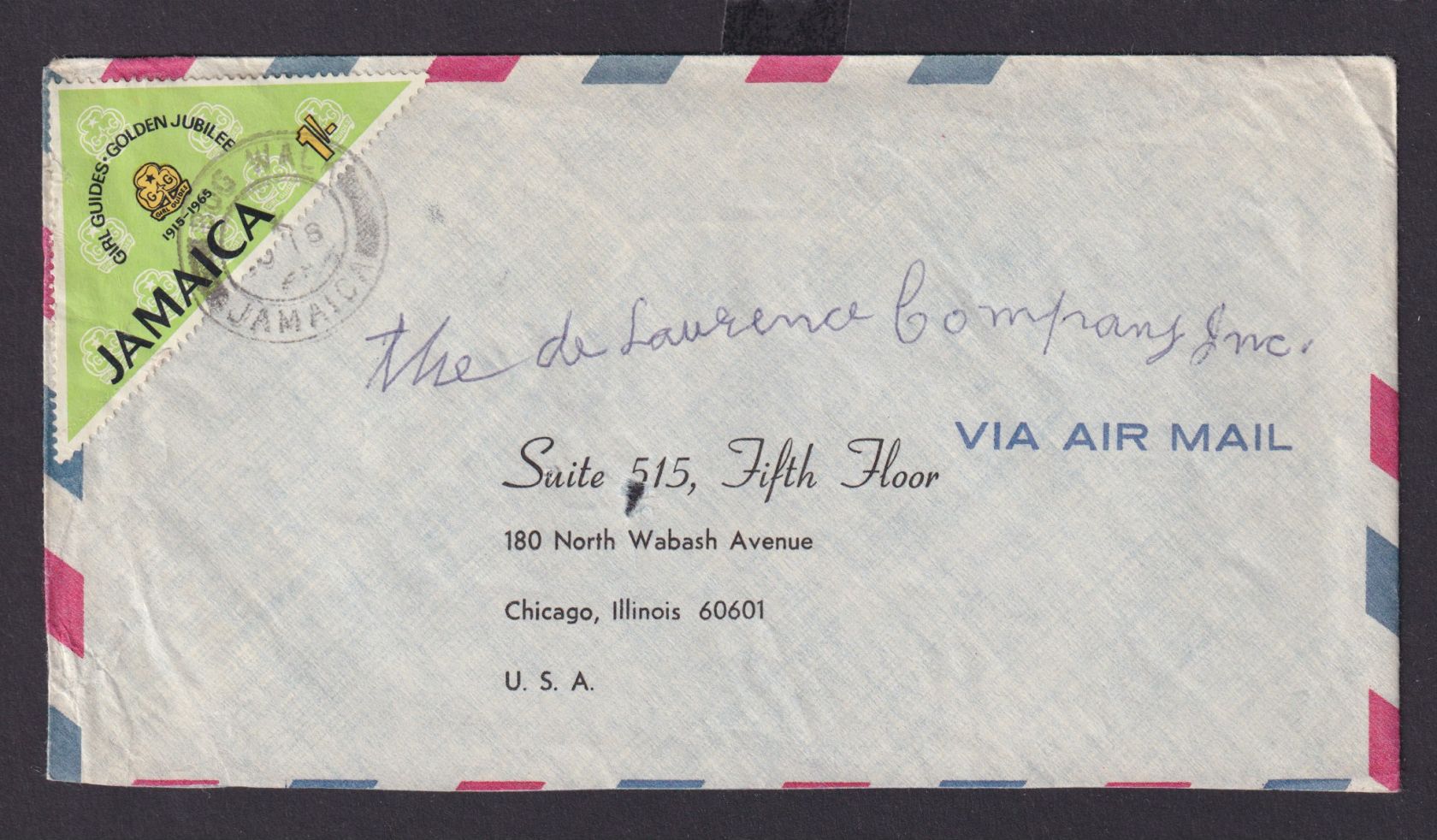 Jamaica Flugpost Brief 1Sh. Girl Guides Golden Jubilee Bog Walk Chicago Illinois