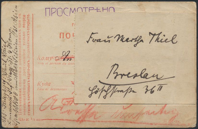 Kriegsgefangenenpost 1. Weltkrieg Sibirien Spasskoje Russland nach Breslau