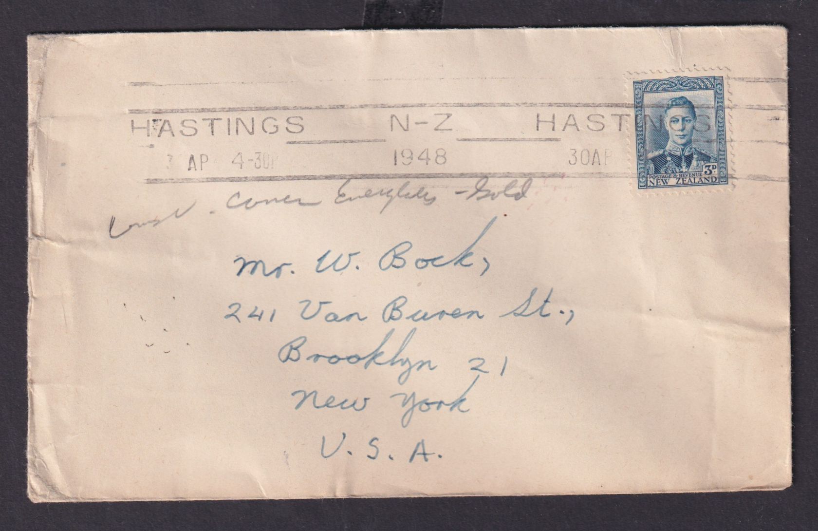 Neuseeland Brief EF 3d Hastings nach Brooklyn New York USA 1948