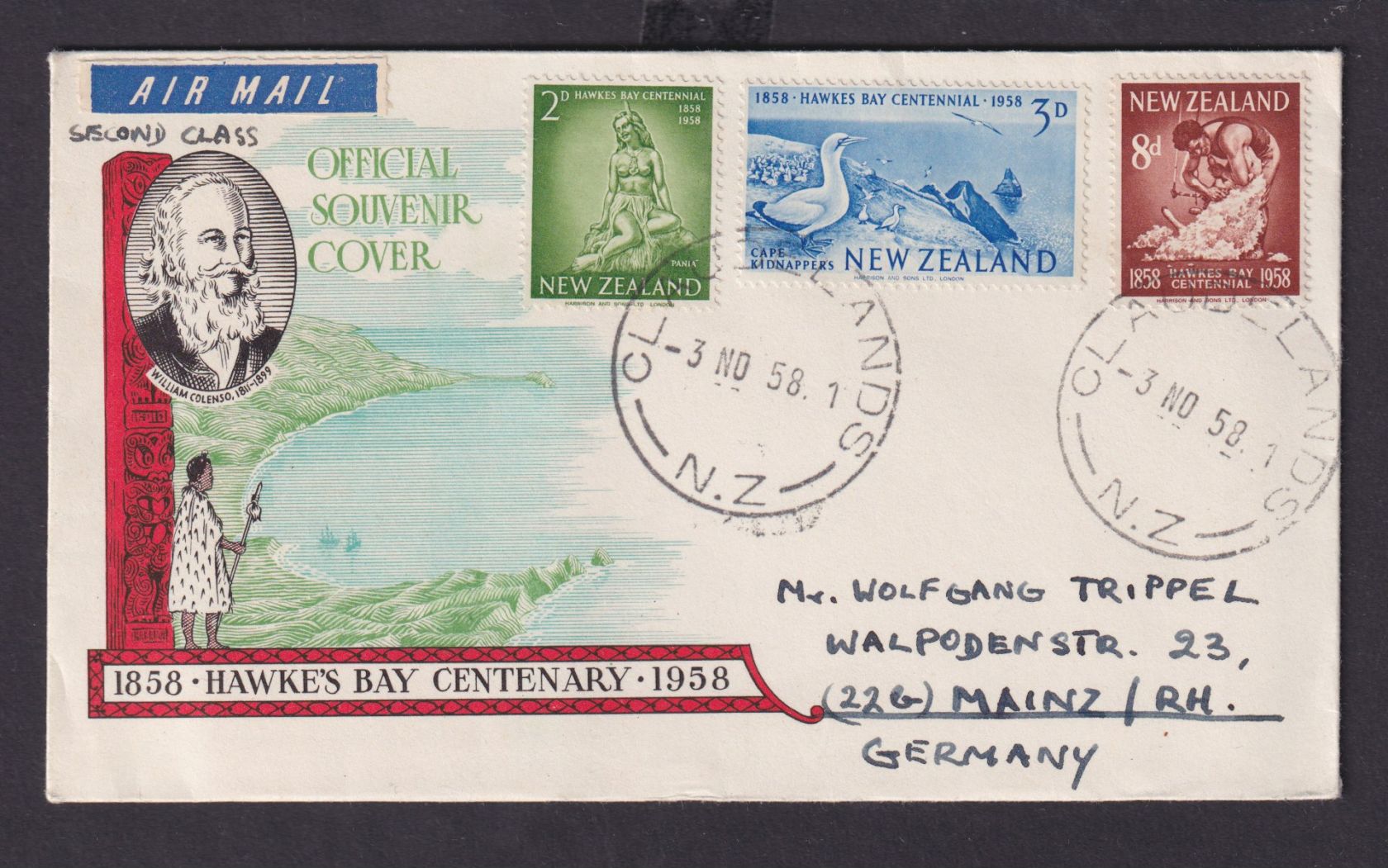 Neuseeland schön illustierter Brief Hawkes Bay Entdeckung Claudelands Mainz