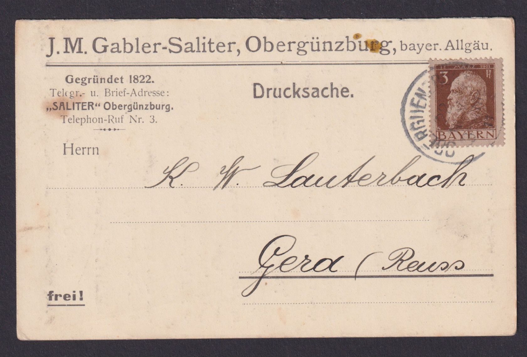 Obergrünzburg Altdeutschland Bayern Allgäu EF 3 Pfg Luitpold Drucksache Vordruck