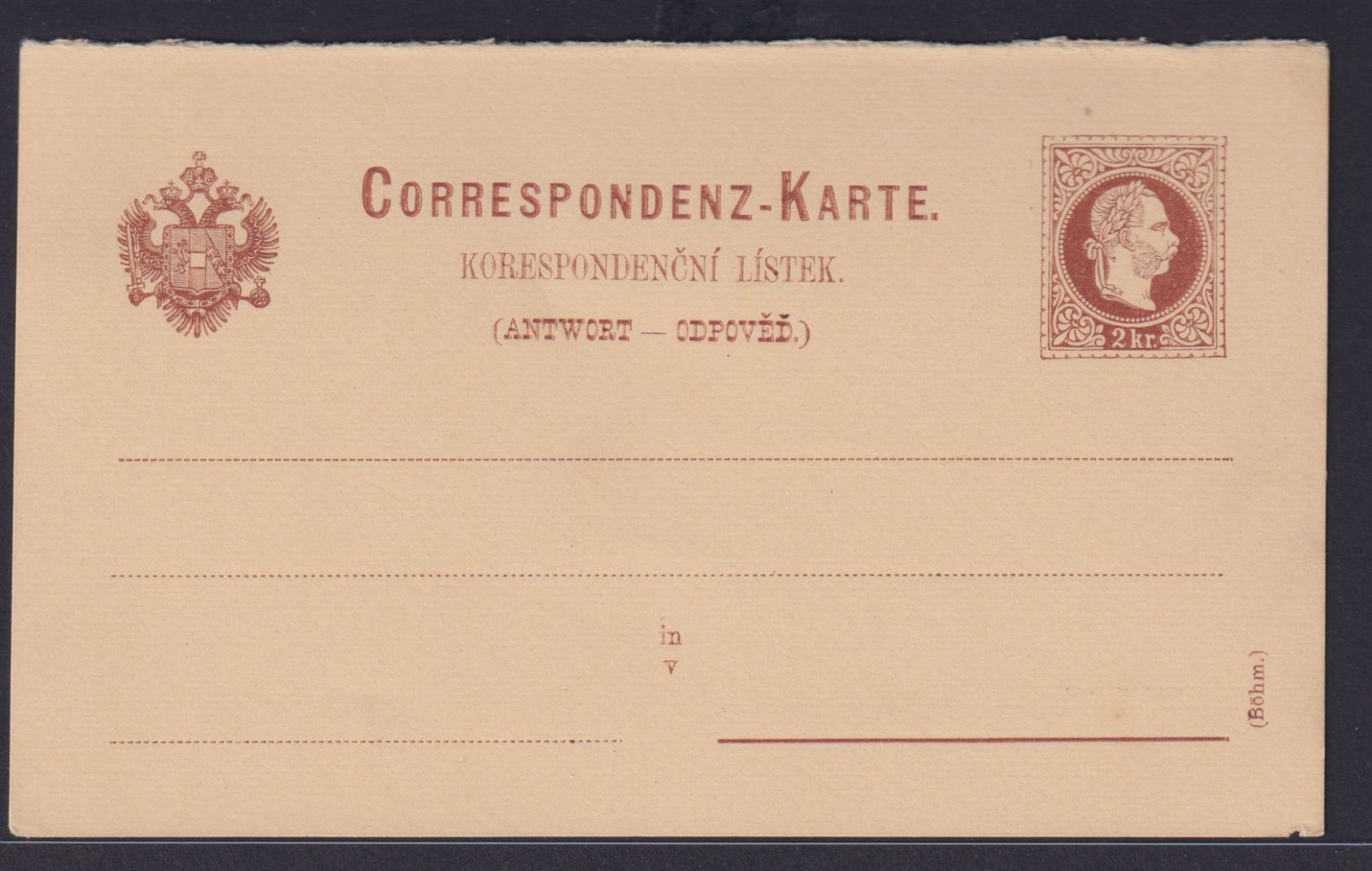 Österreich Ganzsache 2 Kreuzer Antwort Böhmen P 35 A Kaiser Franz Joseph