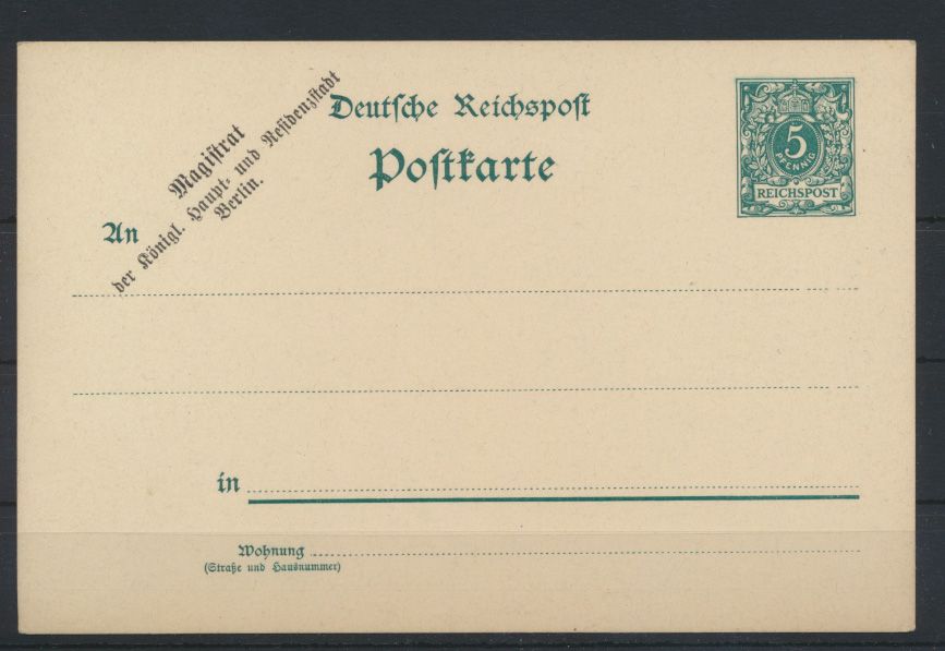 Reich Ganzsache Zudruck Magistrat der königlichen Haupt -u. Residenzstadt Berlin
