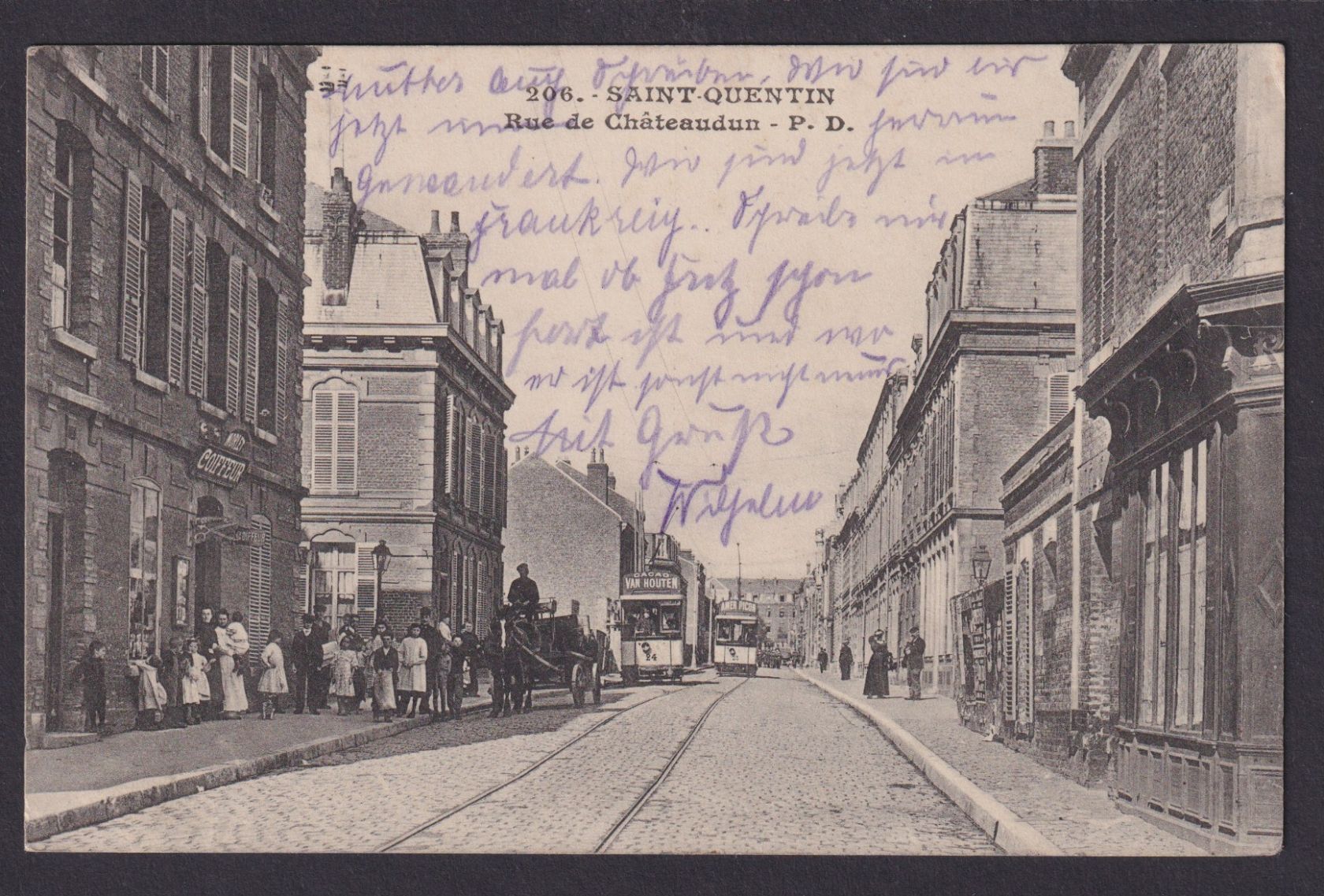 Saint Quentin Ansichtskarte Frankreich Feldpost Strassenbahn Pferdefuhrwerk