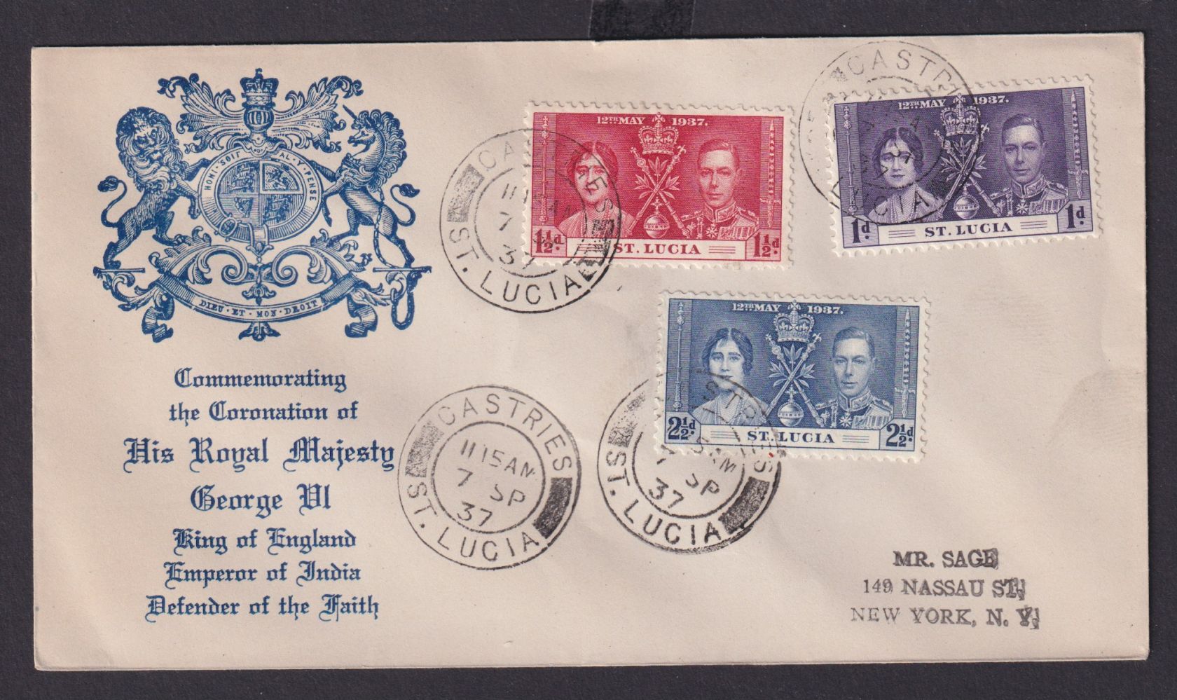 St. Lucia Britische Kolonien Karibik Brief Castries nach New York USA Krönung