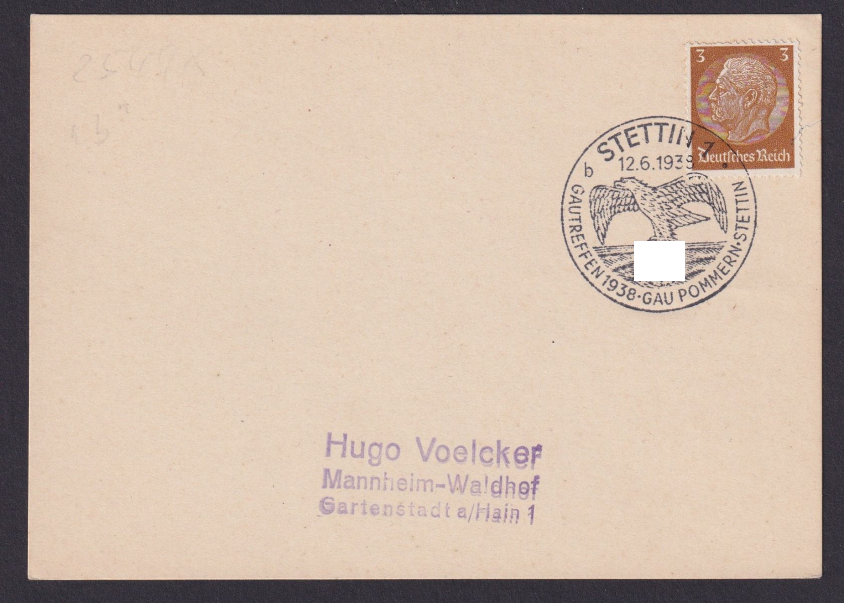 Propaganda SST Gautreffen 1938 Gau Pommern Stettin n. Mannheim Waldhof