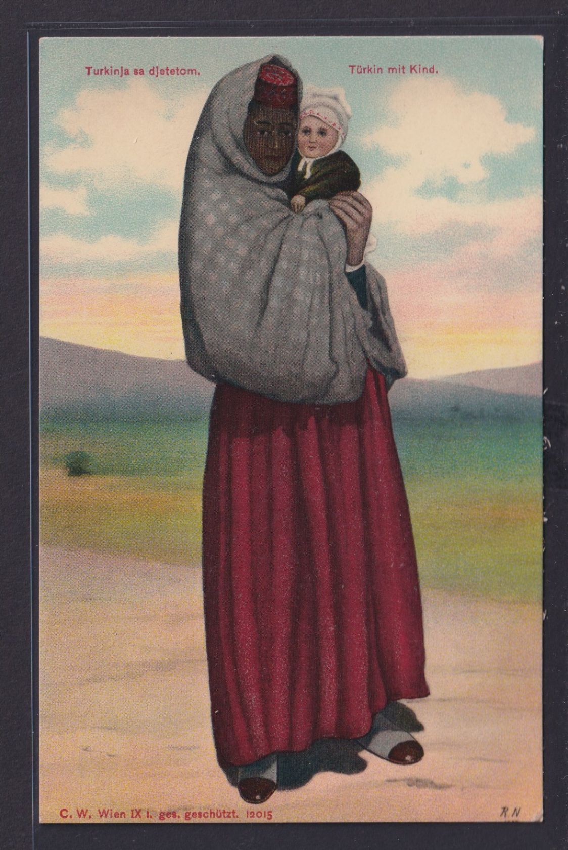 Türkei Ansichtskarte Trachten Künstlerkarte Sign. Türkische Frau mit Kind