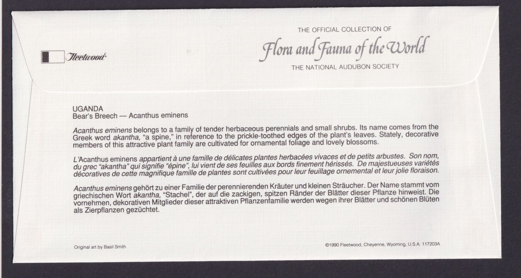 Ein sehr schöner, exotischer und individueller Umschlag aus der tollen Sammlung Pflanzen und Tiere der Welt Flora & Fauna.Rückseitig hat der Beleg eine gute dreisprachige Beschreibung, unter anderem Deutsch und Englisch