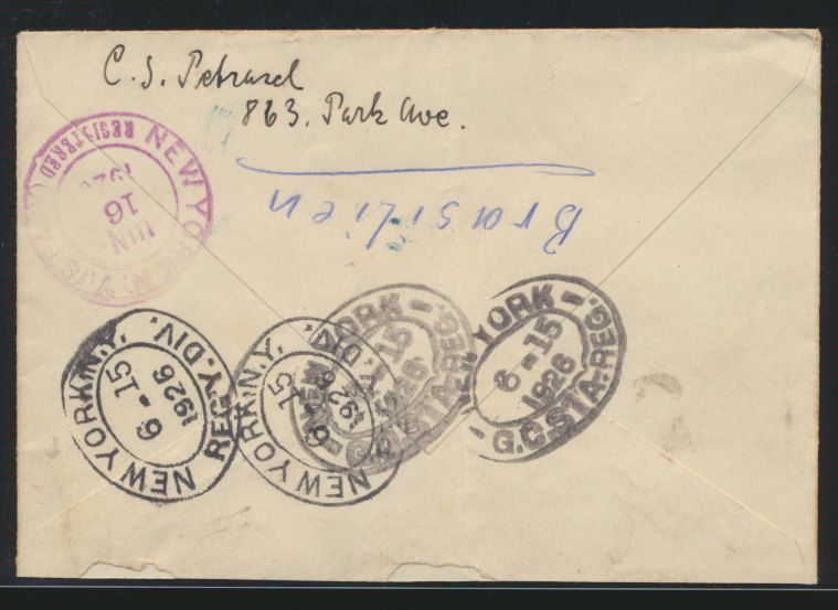 USA Flugpost Brief 20 cent New York mit 9 Stempeln sehr speziell
