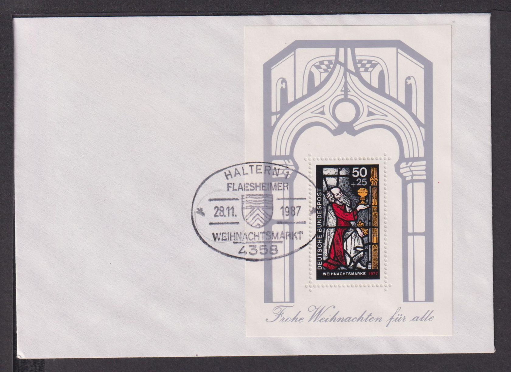 Weihnachten Briefmarken Deutschland Brief Block 1987 Weihnachtsmarkt Haltern