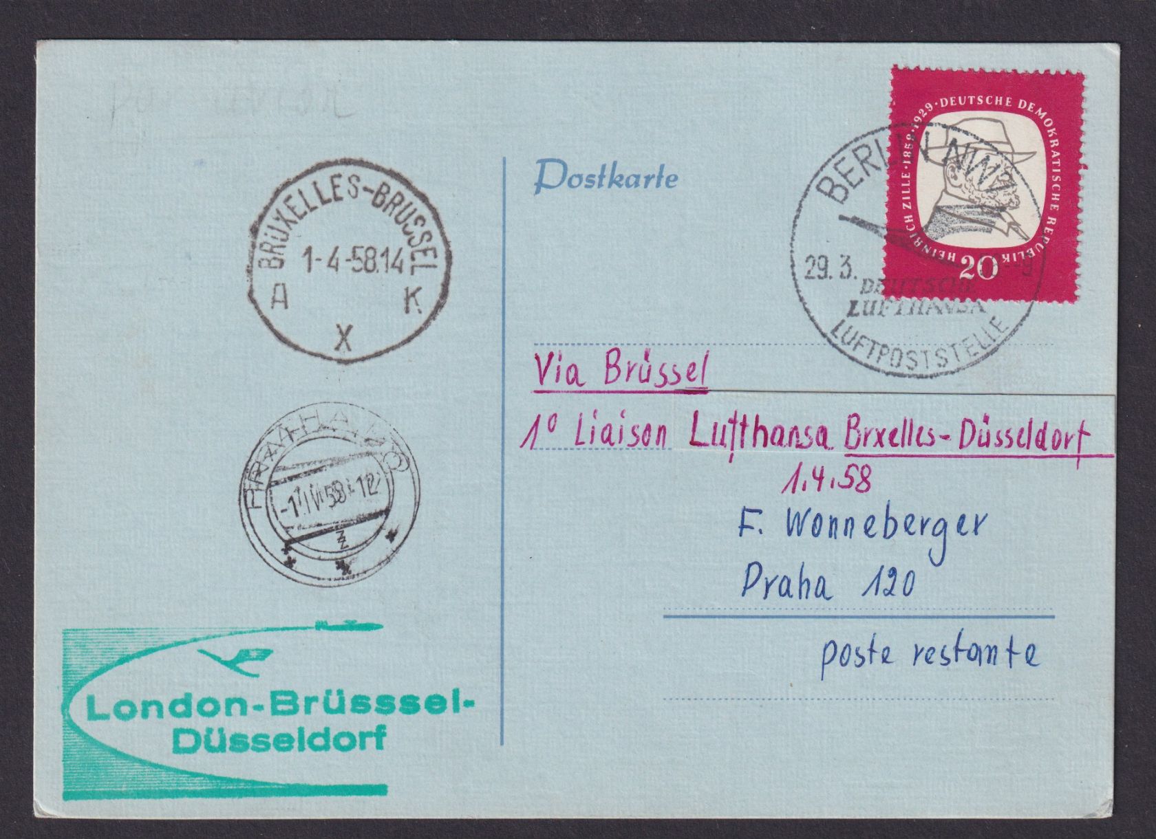 Flugpost Berlin Karte SST Deutsche Lufthansa Luftpoststelle via Brüssel Belgien
