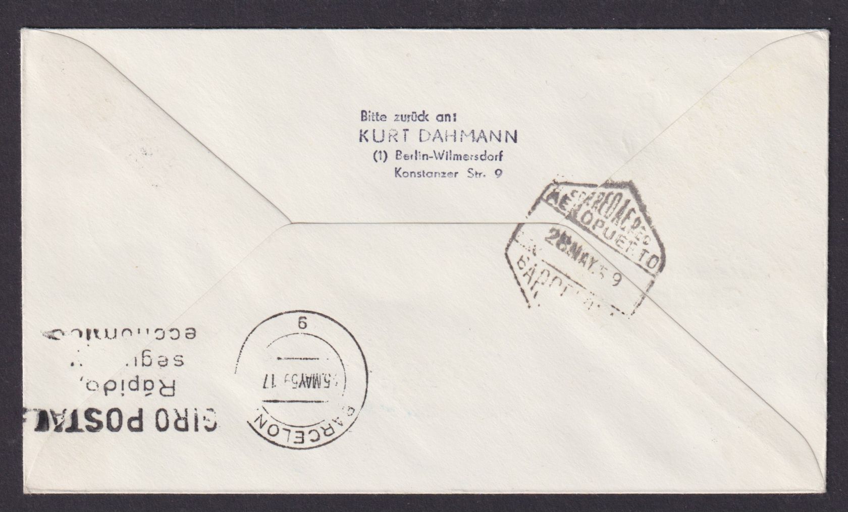 Flugpost Brief Air Mail Berlin Lufthansa Frankfurt Barcelona Spanien 1959 Retour