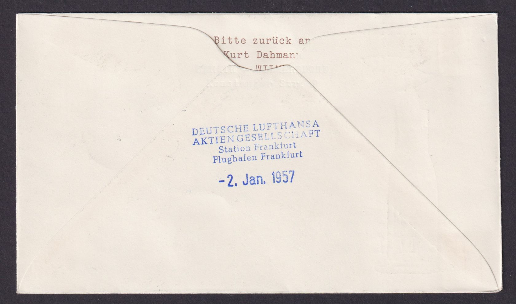 Flugpost Brief Air Mail Berlin Lufthansa von Bremen nach Frankfurt