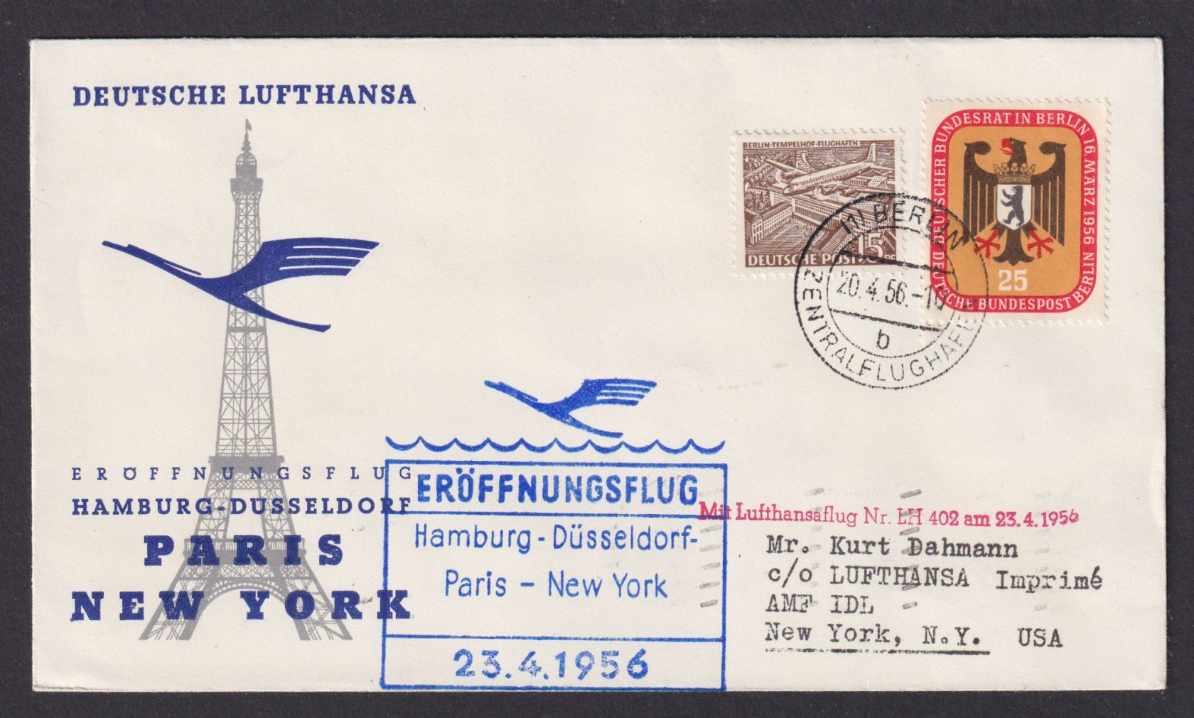 Flugpost Brief Air Mail Berlin MIF Bauten Lufthansa Hamburg New York USA