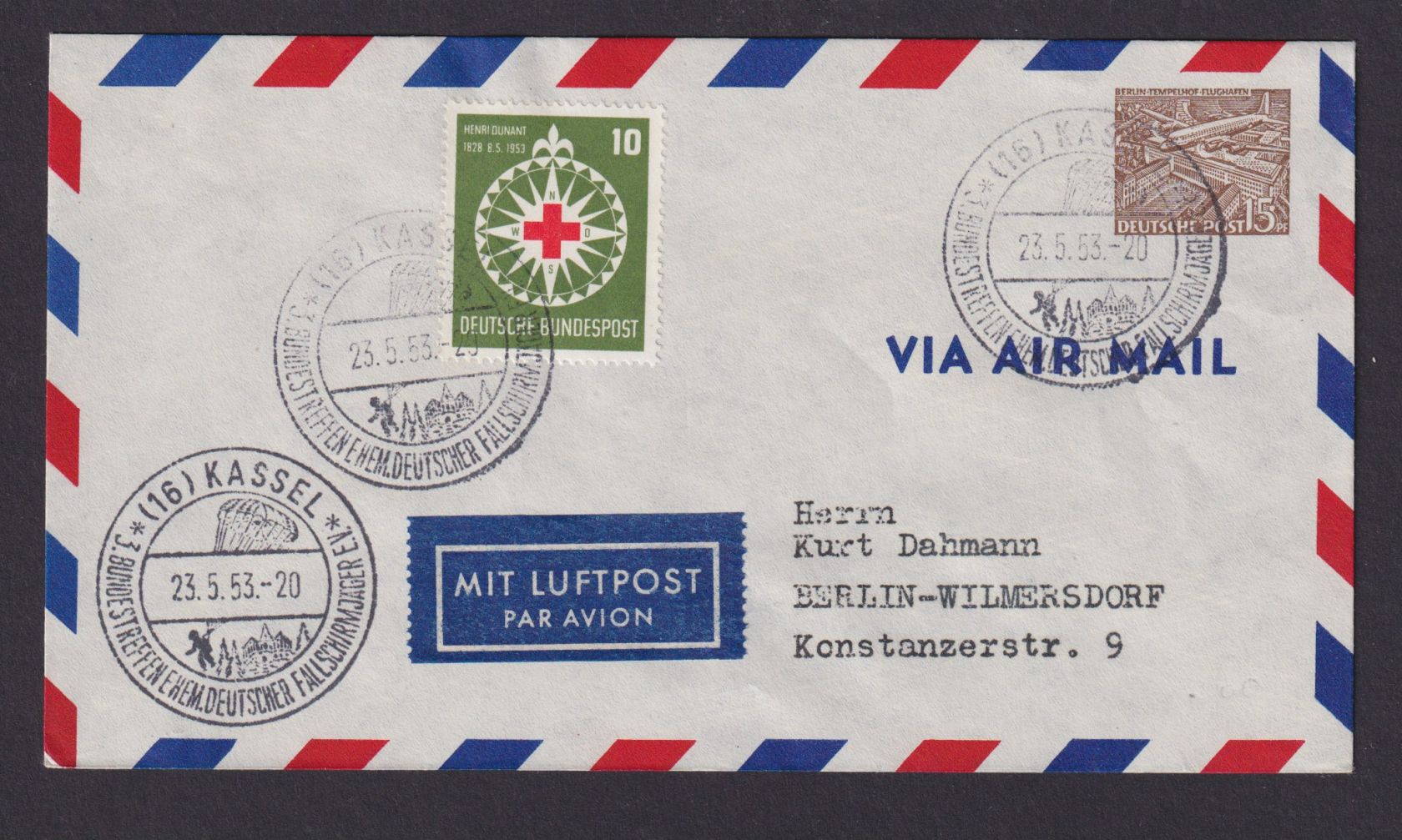 Flugpost Brief Air Mail Berlin Privatganzsache Bauten + ZuF Bund Dunant Kassel