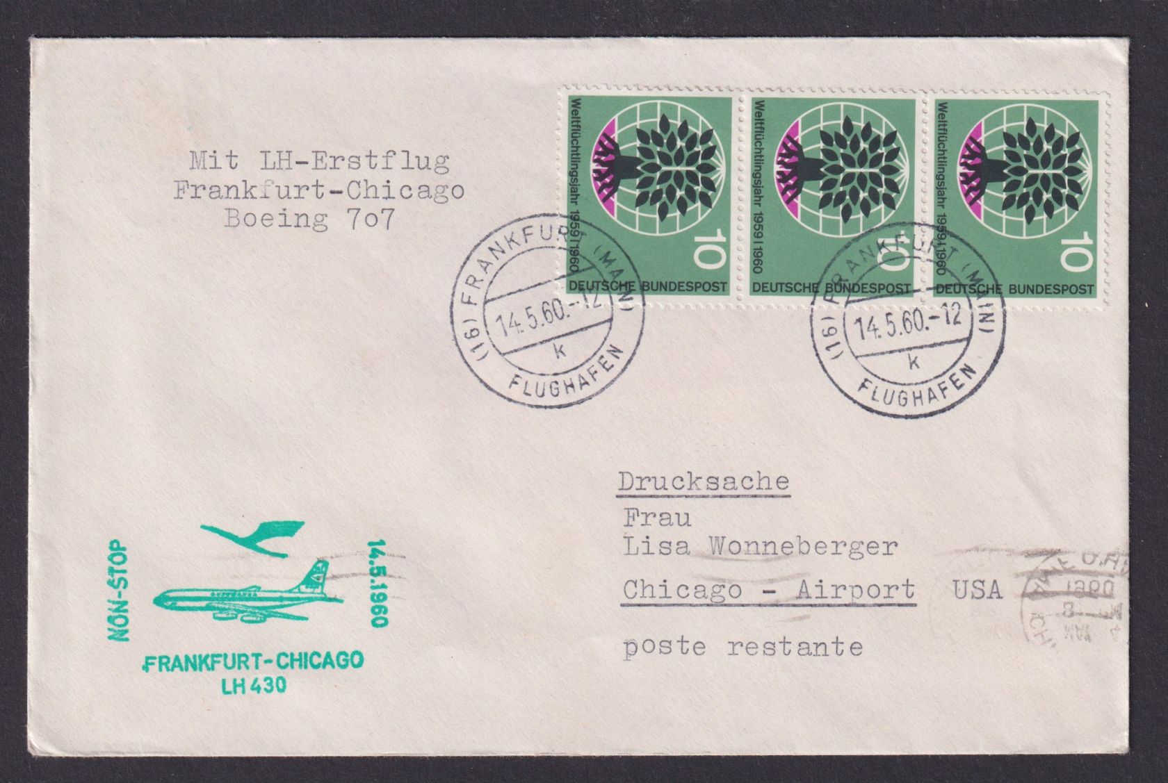 Flugpost Brief Air Mail Bund MEF 326 Lufthansa Erstflug Boeing 707 Frankfurt