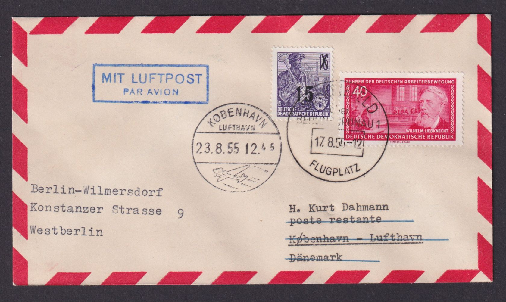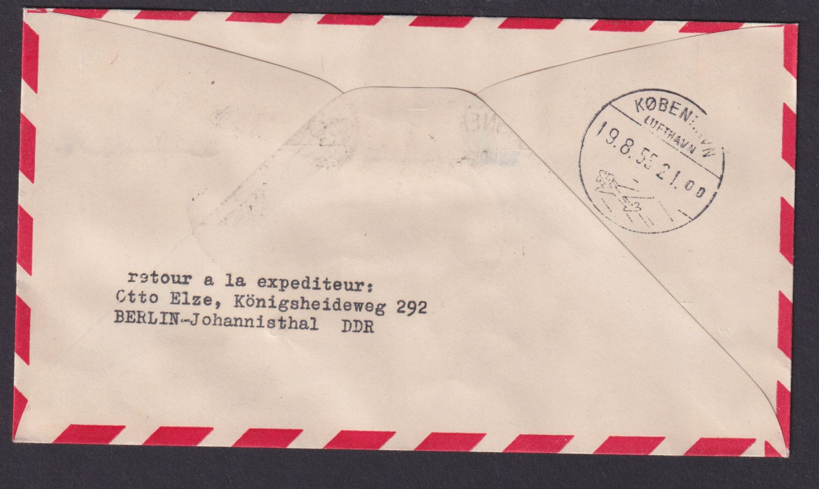 Flugpost Brief Air Mail DDR ab Berlin Schönefeld Flugplatz n Kopenhagen Dänemark