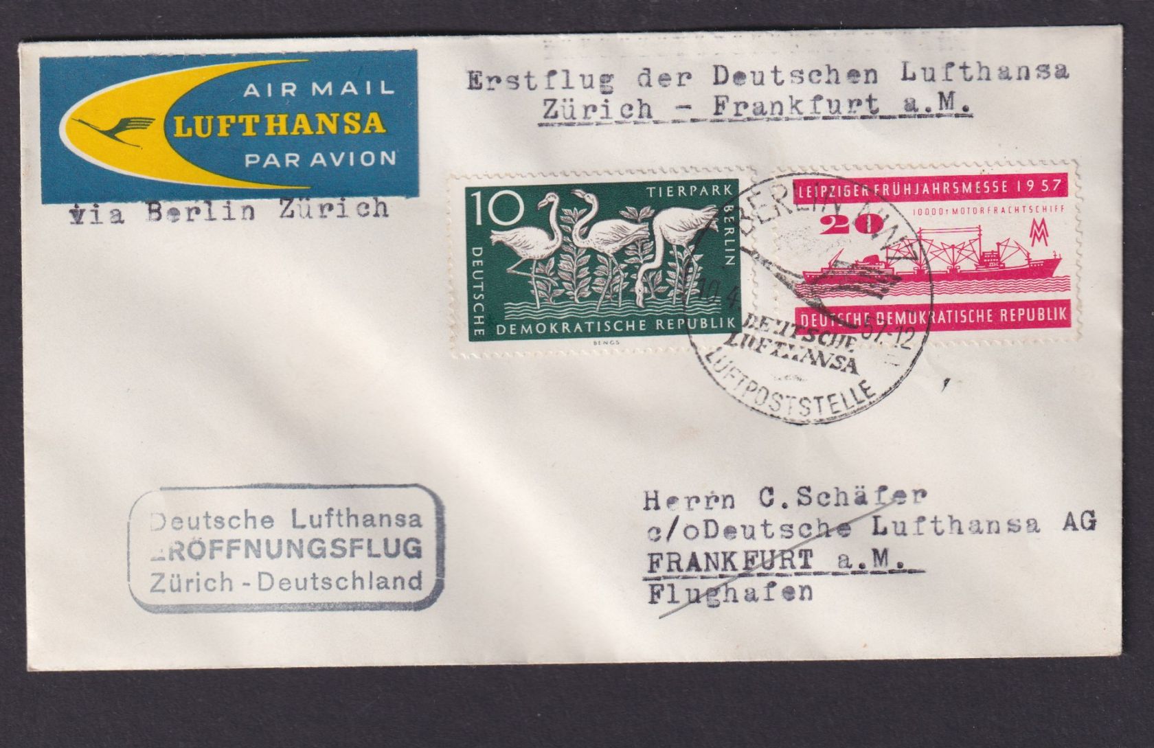 Flugpost Brief Air Mail DDR Erstflug Lufthansa Zürich Schweiz Frankfurt a.M 1957