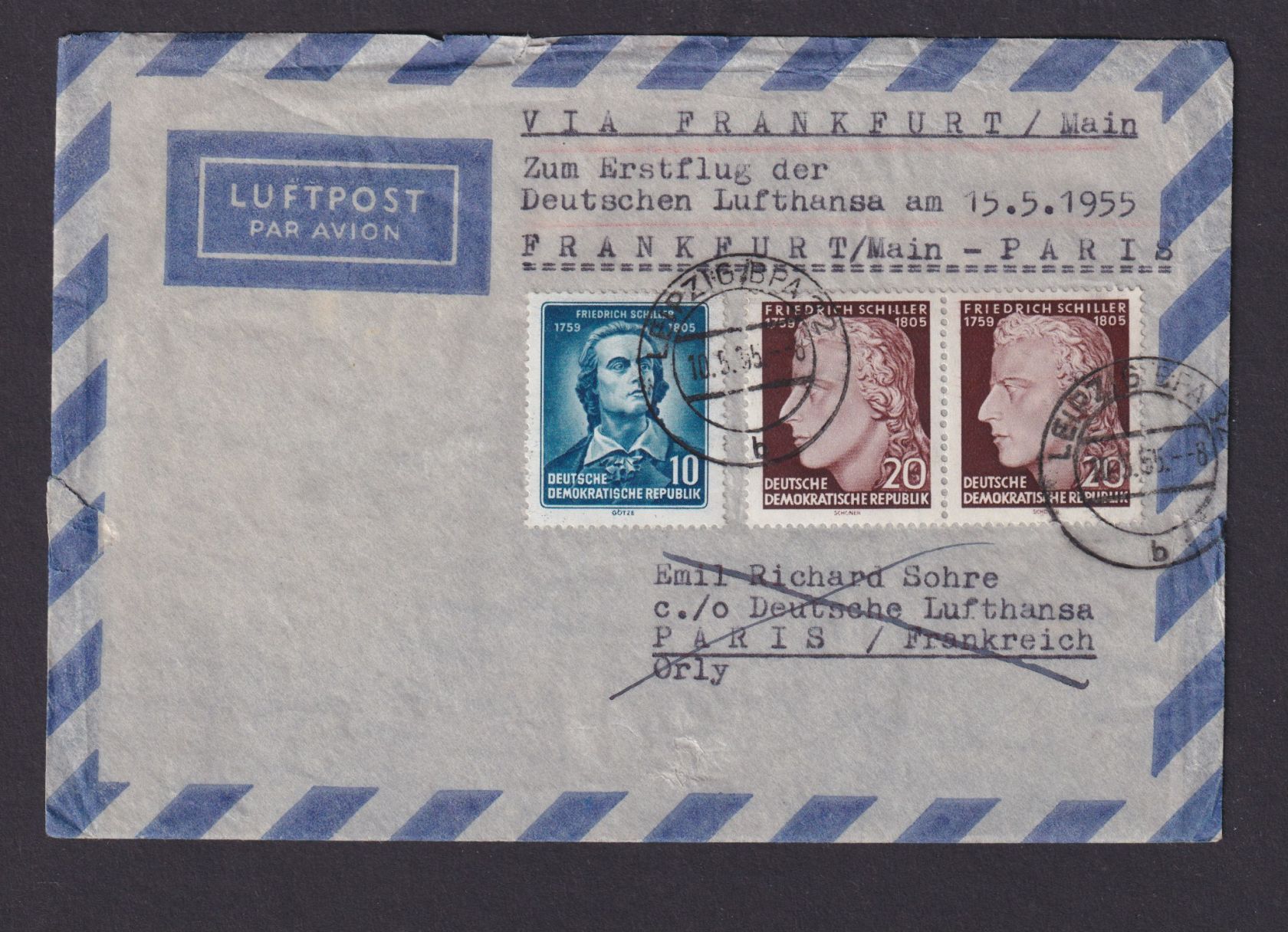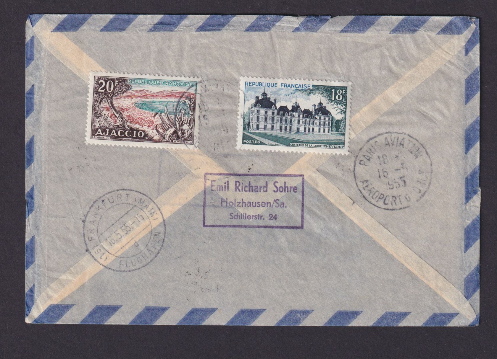 Flugpost Brief Air Mail DDR MIF Paar Leipzig via Frankfurt Paris Frankreich 1955