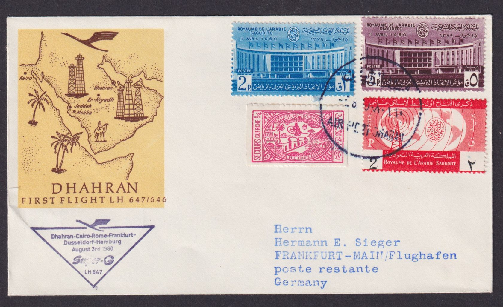 Flugpost Brief Air Mail Lufthansa gute Destination Dhahran Saudi Arabien Cairo