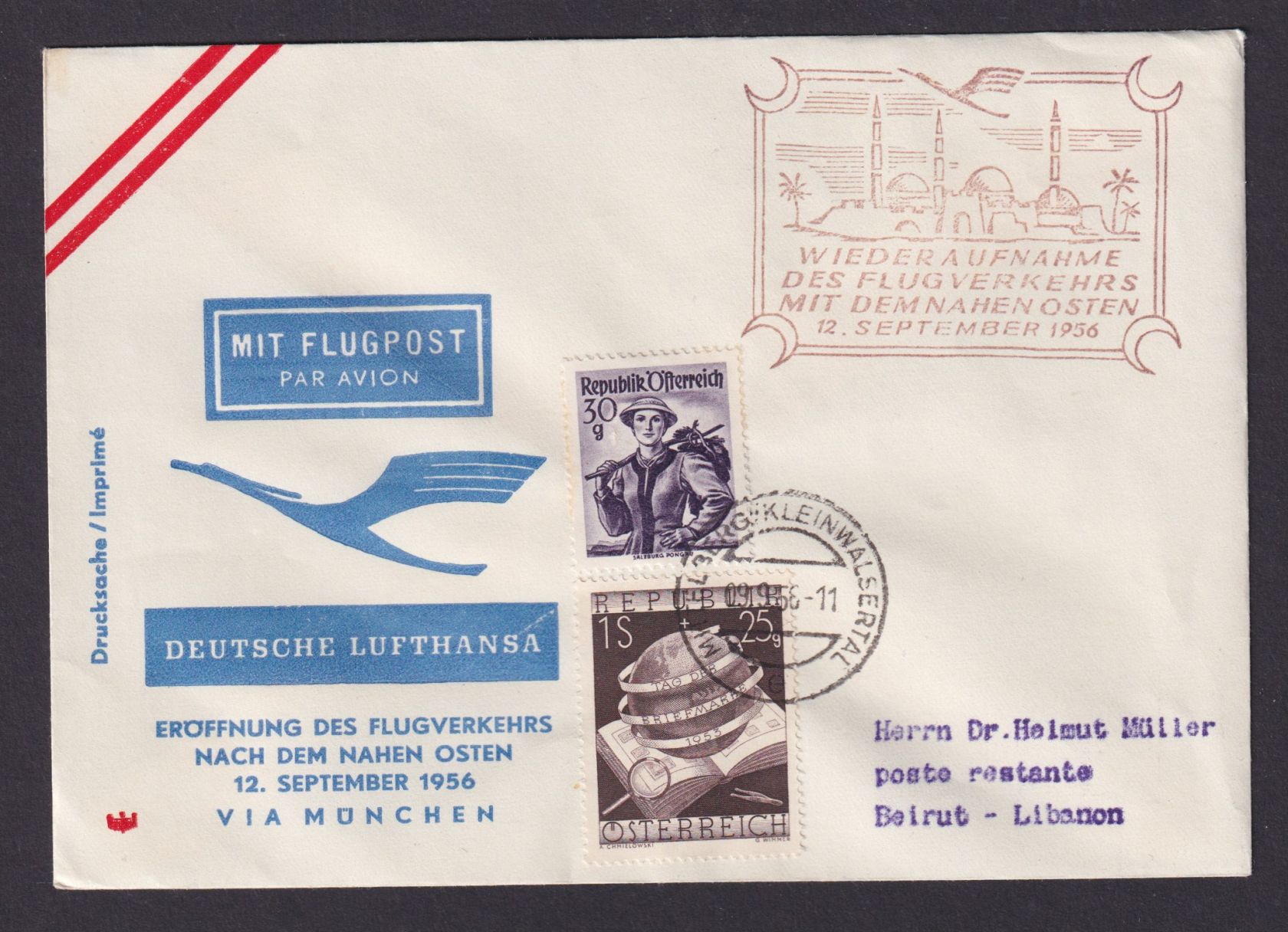 Flugpost Brief Air Mail Österreich schöne MIF Weltkugel globus Lufthansa Beirut