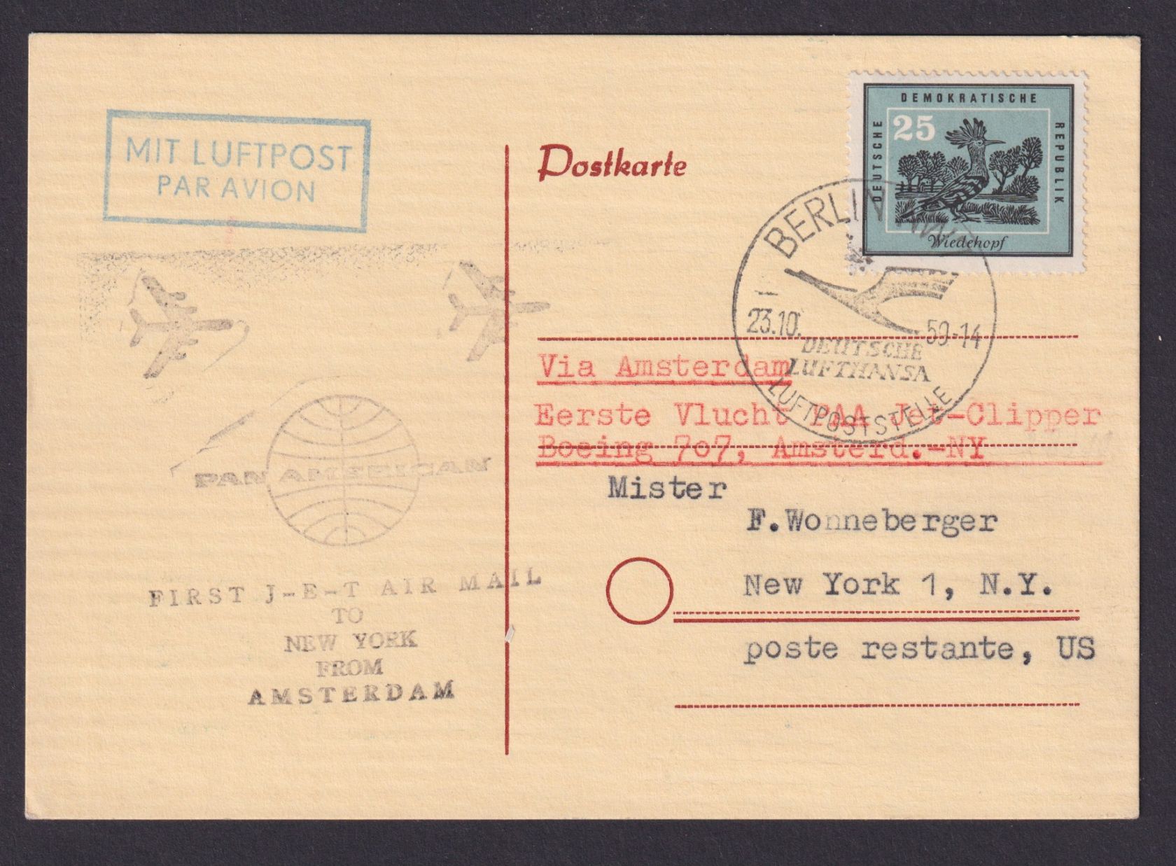 Flugpost Brief Air Mail Pan America Erstflug Amsterdam New York DDR Zuleitung