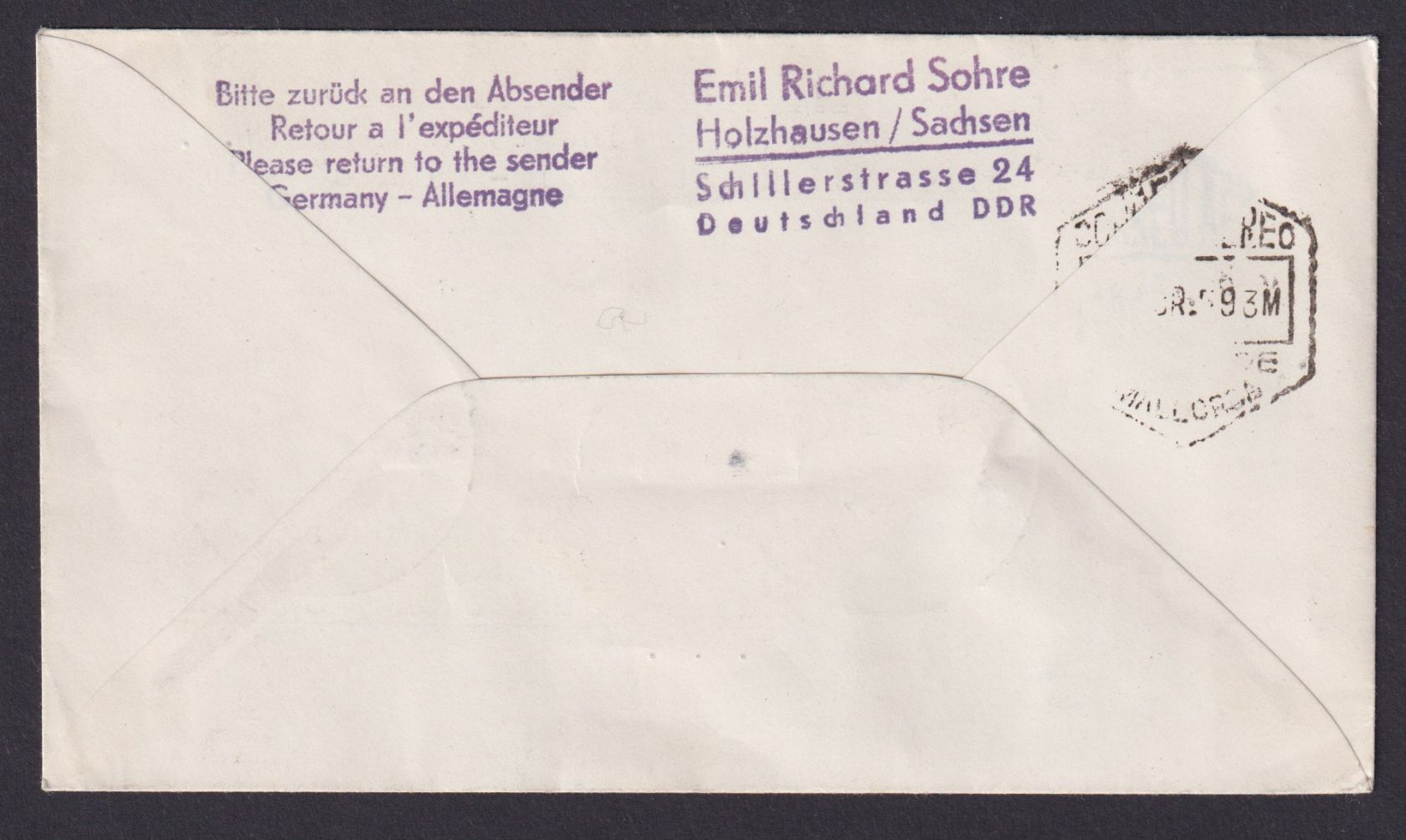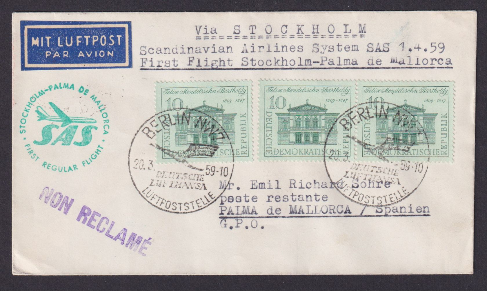Flugpost Brief Air Mail SAS Stockholm Mallorca Spanien inter. DDR MEF Zuleitung