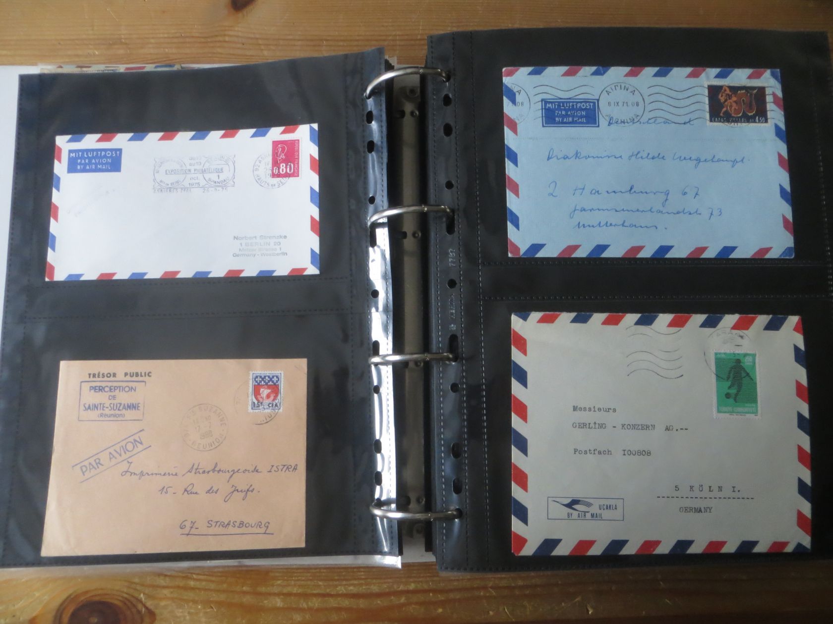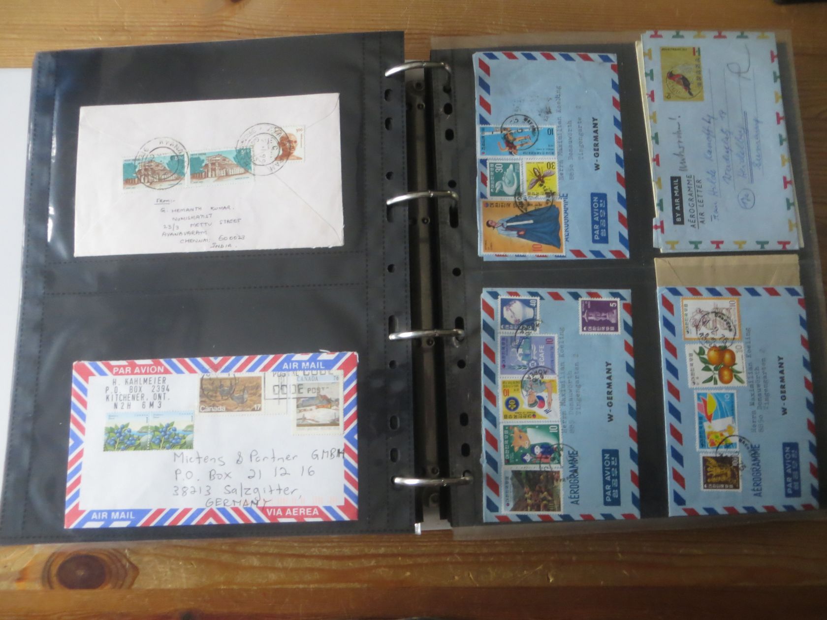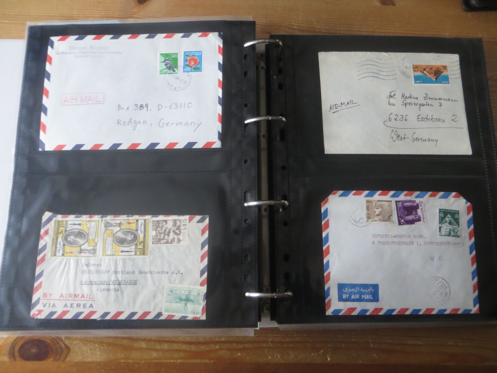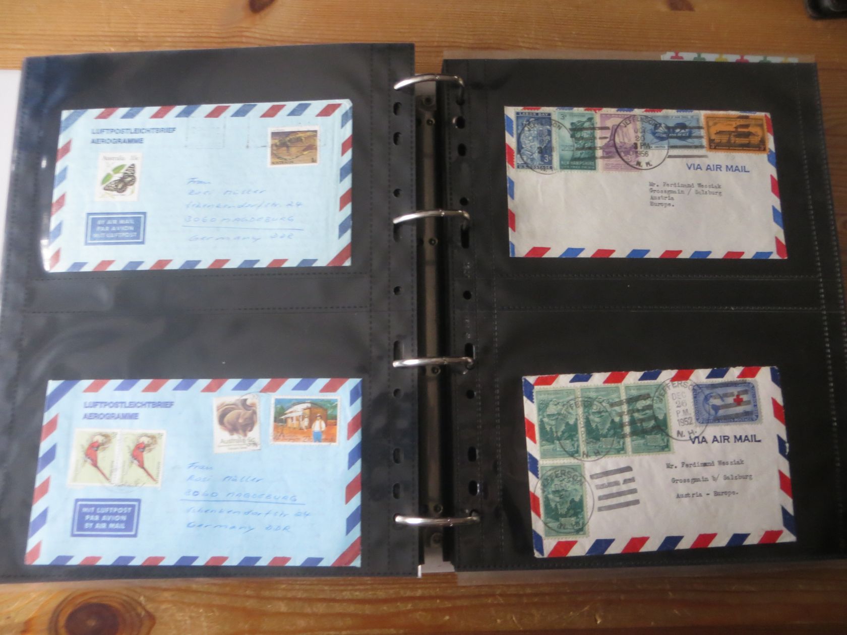 Stück! Alles gute Gesamterhaltung und sehr hoher Einstandspreis. Tolle Briefe und Ganzsachen - Sammlung, auch mit enigen schönen Aerogrammen. Incl. auch viel Asien und Afrika! Sehr vielfältig und auch ideal zum Auflösen, da nicht die übliche Masse an Luftpost - Belegen. Wie meist bei uns ohne Entnahmen im Angebot! Der Sammler hat alles sehr sauber mit Fotoecken auf Blättern angelegt!