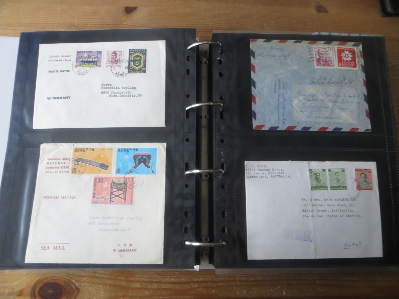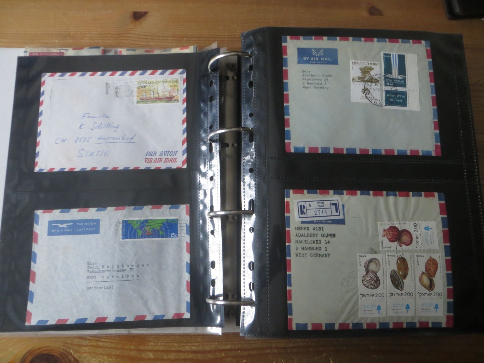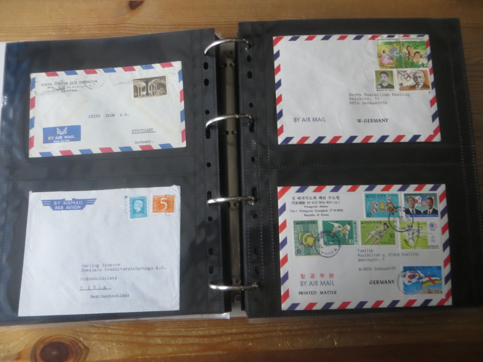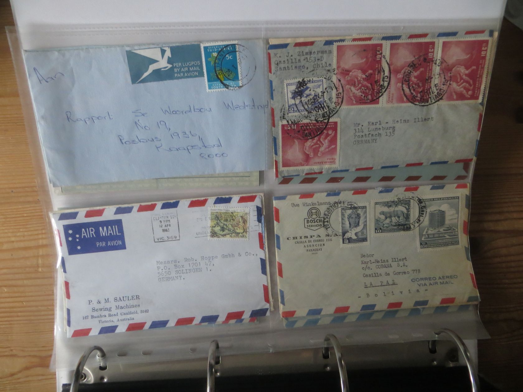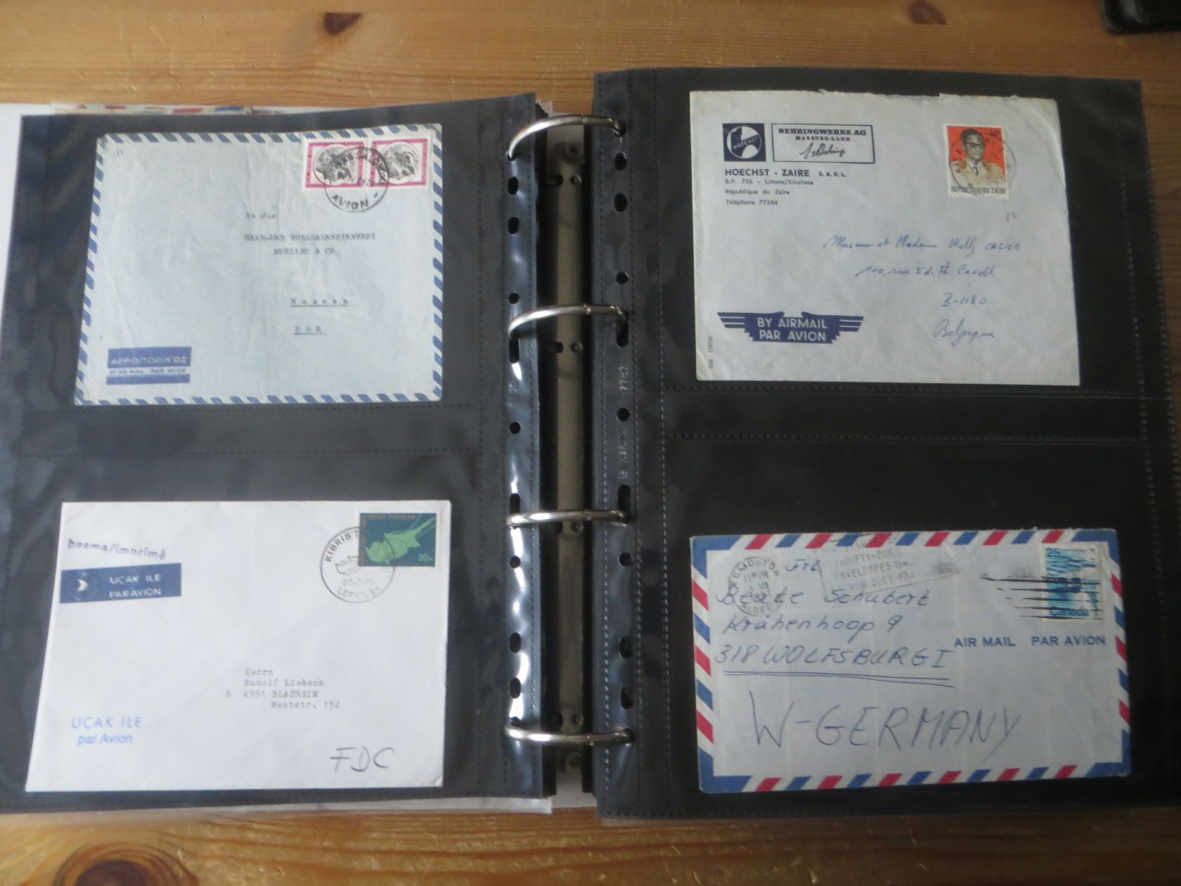 Stück! Alles gute Gesamterhaltung und sehr hoher Einstandspreis. Tolle Briefe und Ganzsachen - Sammlung, auch mit enigen schönen Aerogrammen. Incl. auch viel Asien und Afrika! Sehr vielfältig und auch ideal zum Auflösen, da nicht die übliche Masse an Luftpost - Belegen. Wie meist bei uns ohne Entnahmen im Angebot! Der Sammler hat alles sehr sauber mit Fotoecken auf Blättern angelegt!