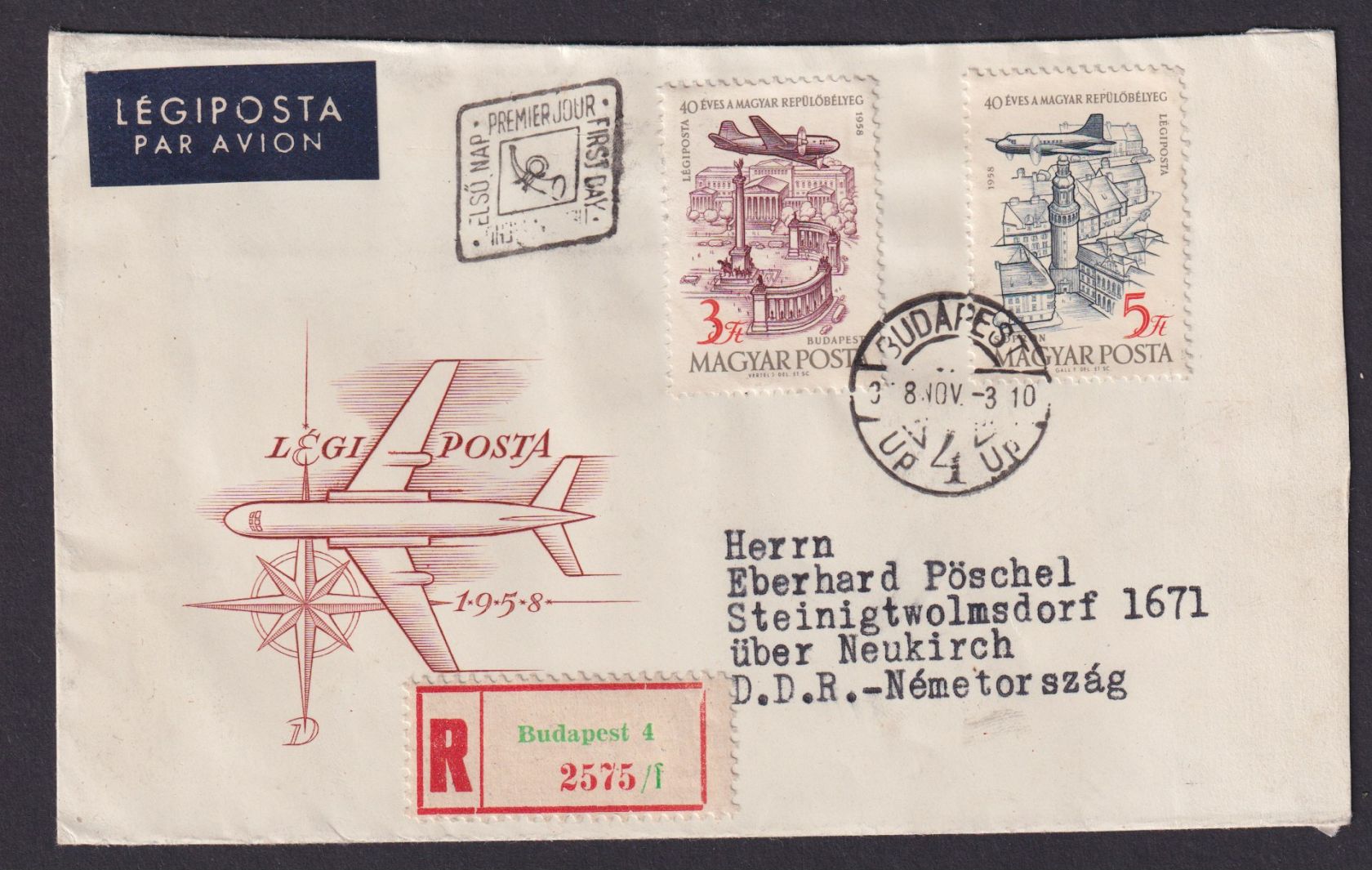 Flugpost R Brief Air Mail Ungarn Erstflug Budapest Steinigtwolmsdorf Sachsen DDR