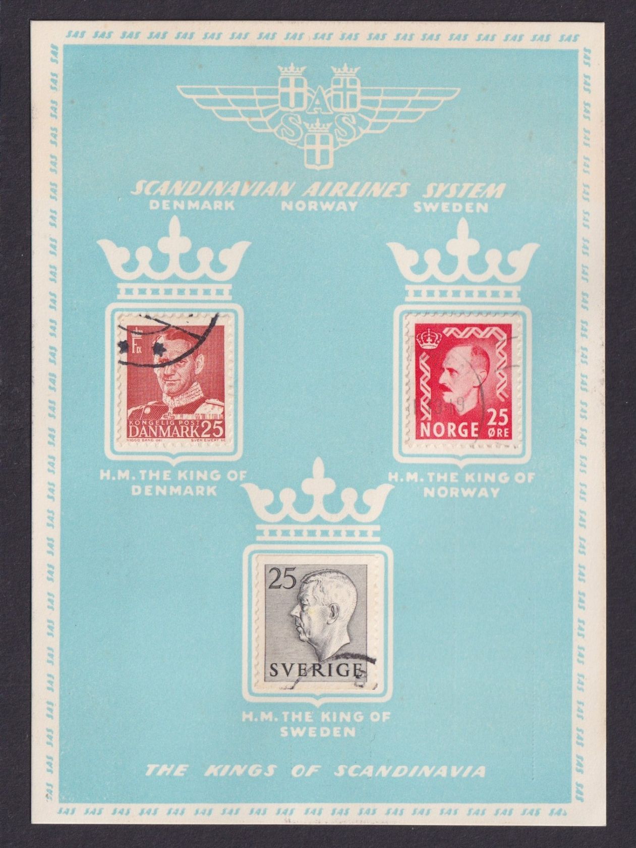 Flugpost SAS schöne Flugkarte Marken Dänemark Norwegen Schweden The Kings of