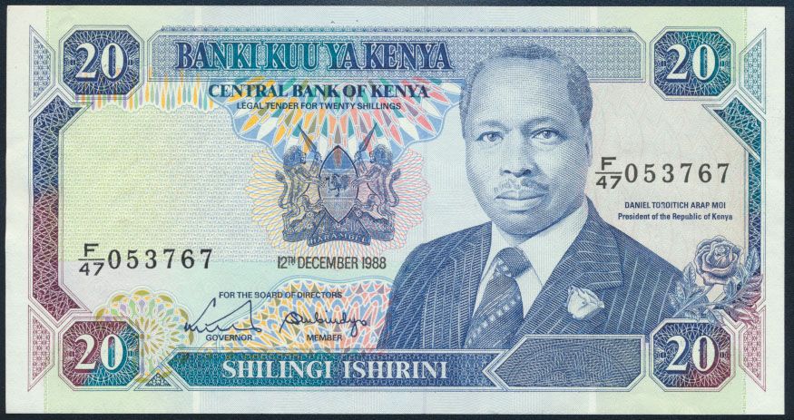 Geldscheine Banknote Kenya Kenia 20 Shillings P-25a vorzüglich XF 12.12.1988