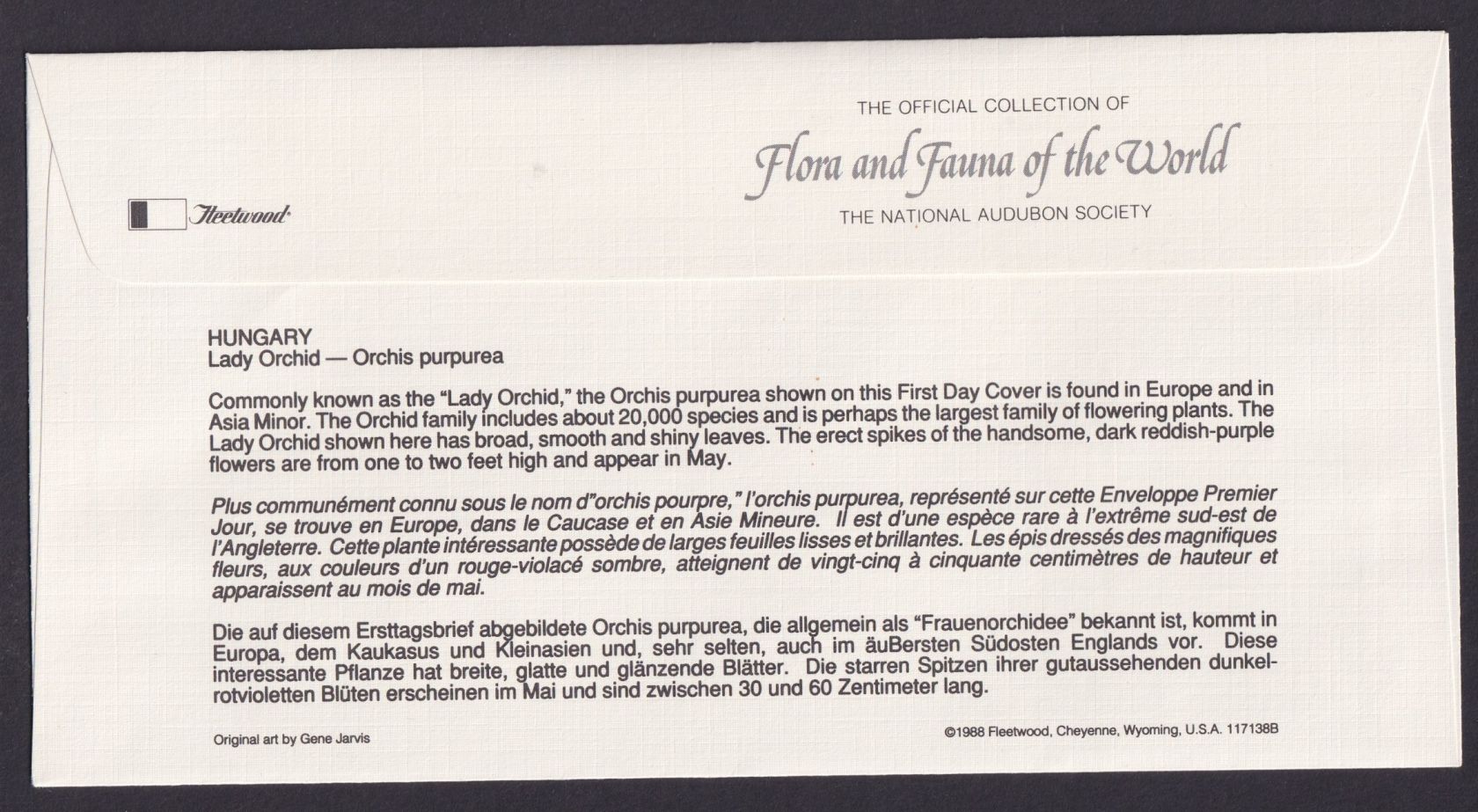 Ein sehr schöner, individueller Umschlag aus der tollen Sammlung Pflanzen und Tiere der Welt Flora & Fauna.Rückseitig hat der Beleg eine gute dreisprachige Beschreibung, unter anderem Deutsch und Englisch
