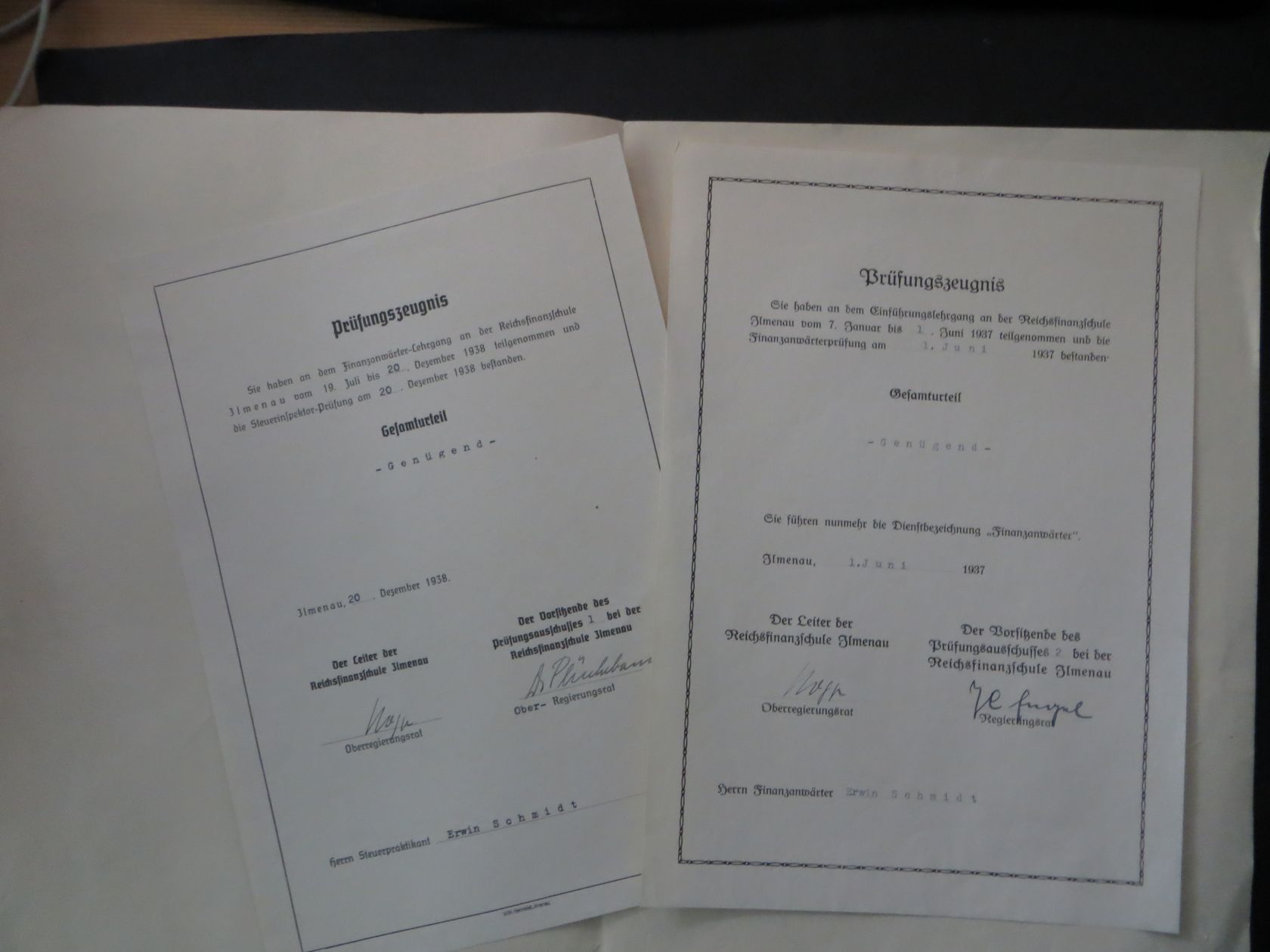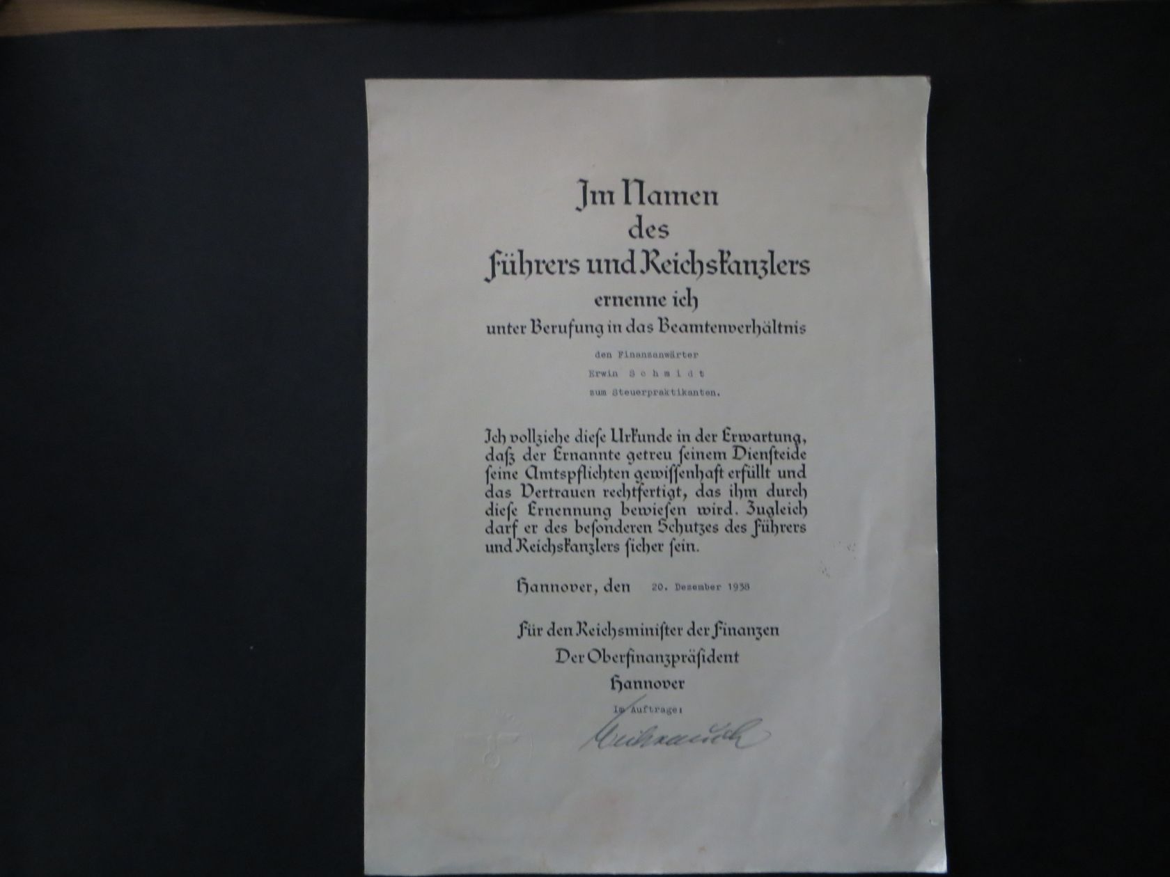 Dazu eine Urkunde "Im Namen des Führers und Reichskanzlers unter Berufung in das Beamtenverhätnis" Hannover 1938. Dazu zwei passende Zeugnisse.