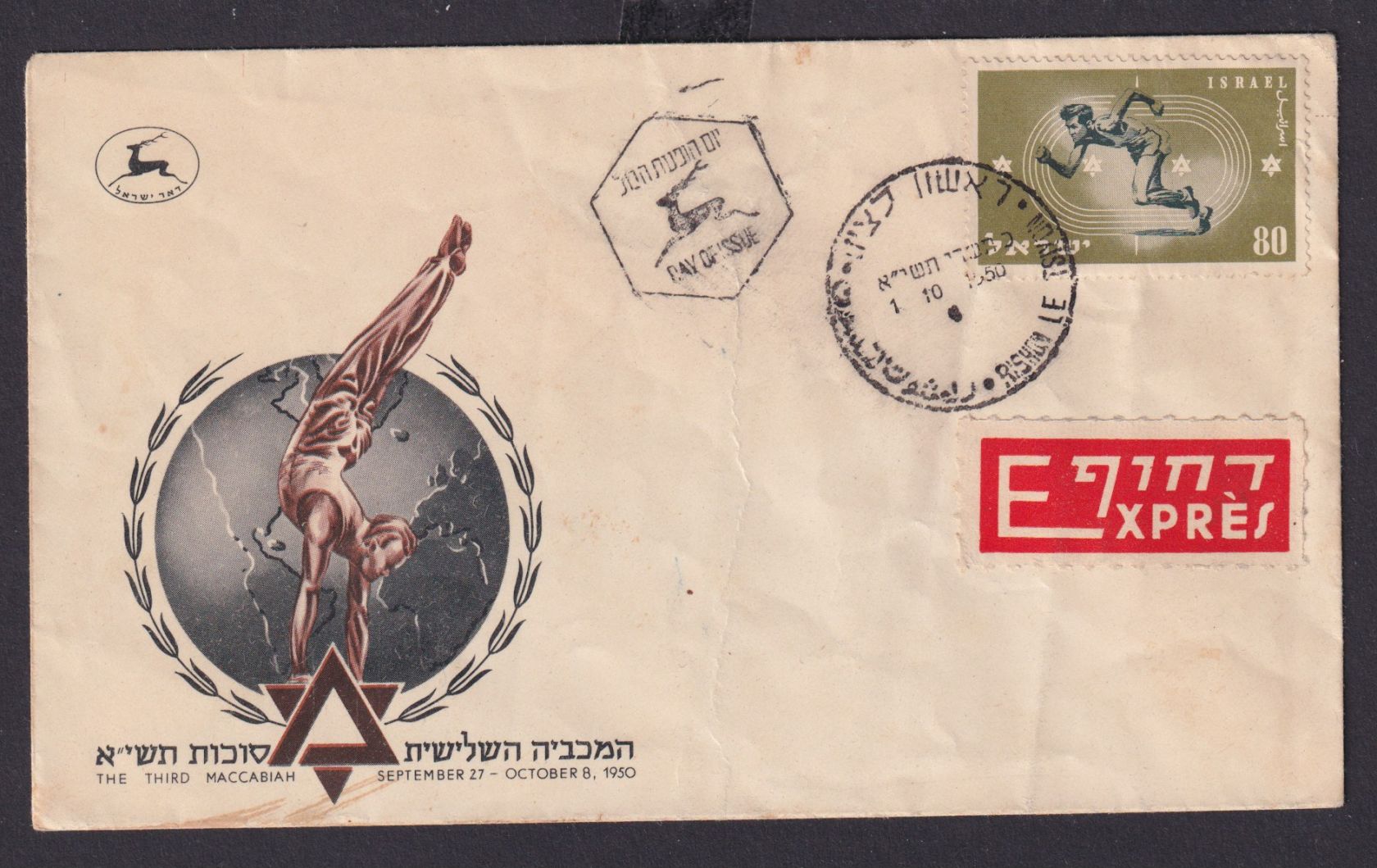 Israel Brief Sport mit sehr schönem Stempel Renntier Tiere 1950 Weltkugel Globus